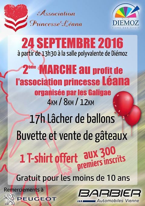 L'association sera présente ce samedi 24 septembre à Diémoz pour une marche au profit de l'Association "Princesse Léana" . Full & Light prendra en charge l'inscription pour tous ses adhérents présents...