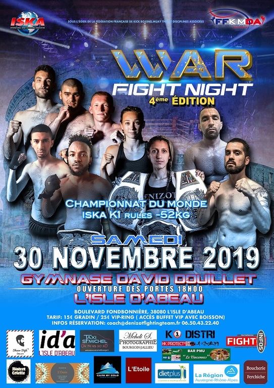 Gala avec plusieurs combats sur ring de boxe pieds-poings; dont un titre de championnat du monde Féminine en K1 Rules -52 kg