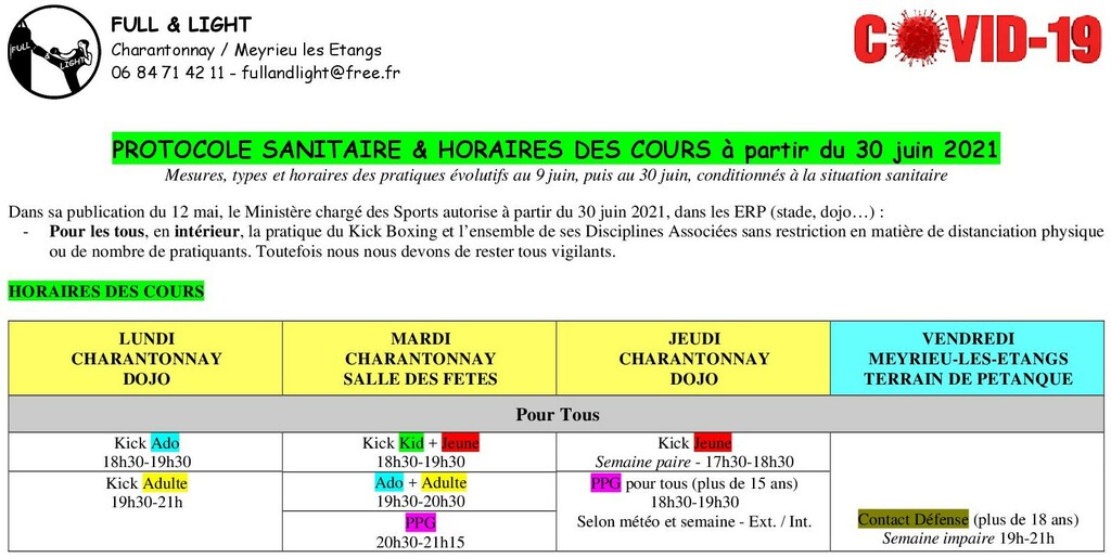 Cours à partir du 30 juin