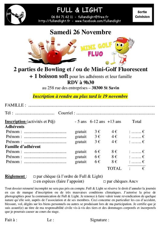 Fiche d’inscription à retourner au plus tard le 19 novembre