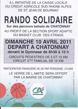 Dimanche 10 avril, quelques courageux adhérents de l’association se retrouvaient la matin à Chatonnay, pour participer à la randonnée organisée pour soutenir la section Sport Adapté du Basket Club des Etangs…