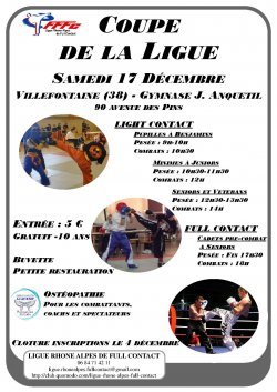 Pour les 8 adhérents engagés à la Coupe de la Ligue Rhône Alpes de Full Contact, ce samedi 17 décembre, certains participaient à leur première compétition… et quelle réussite…
