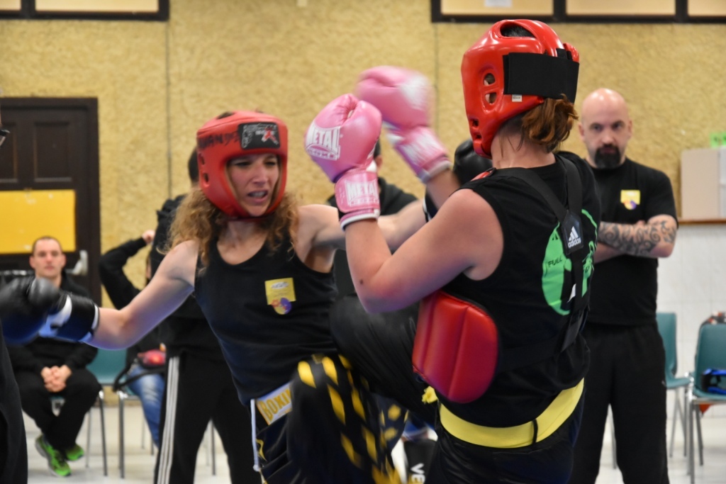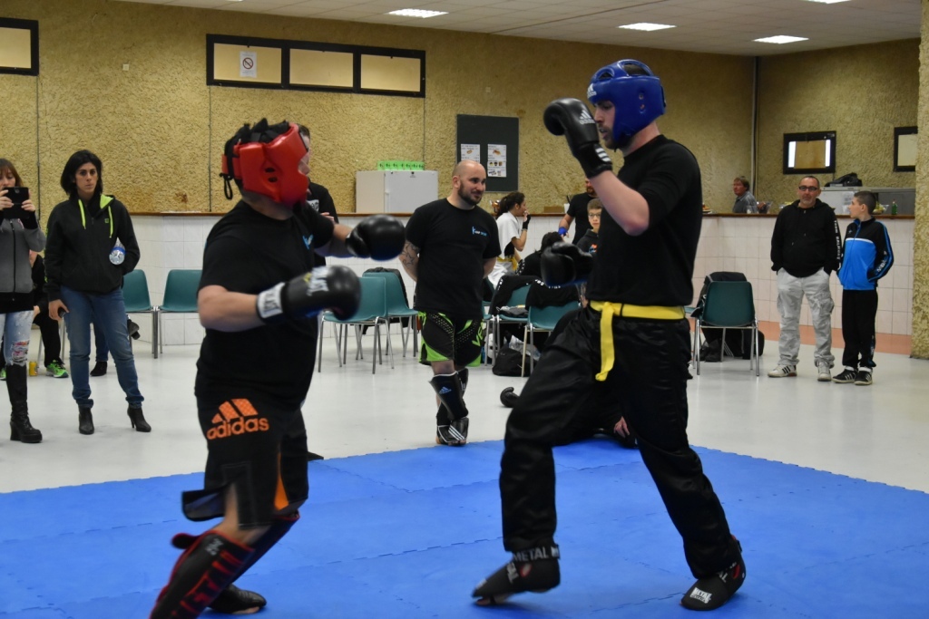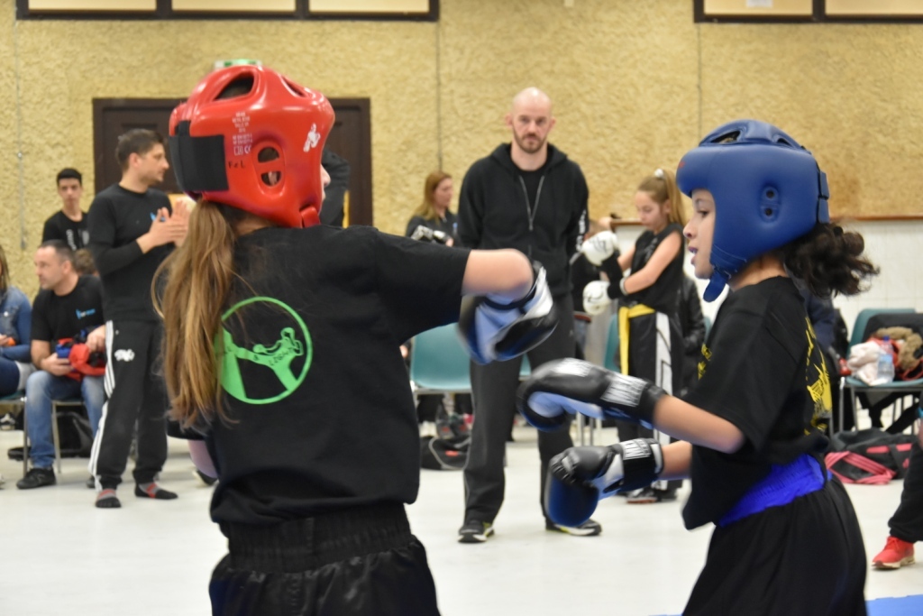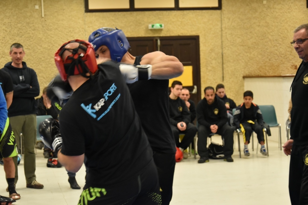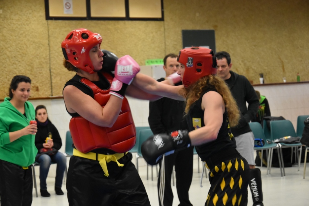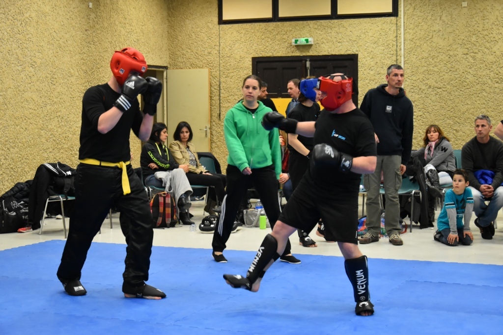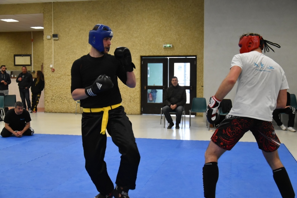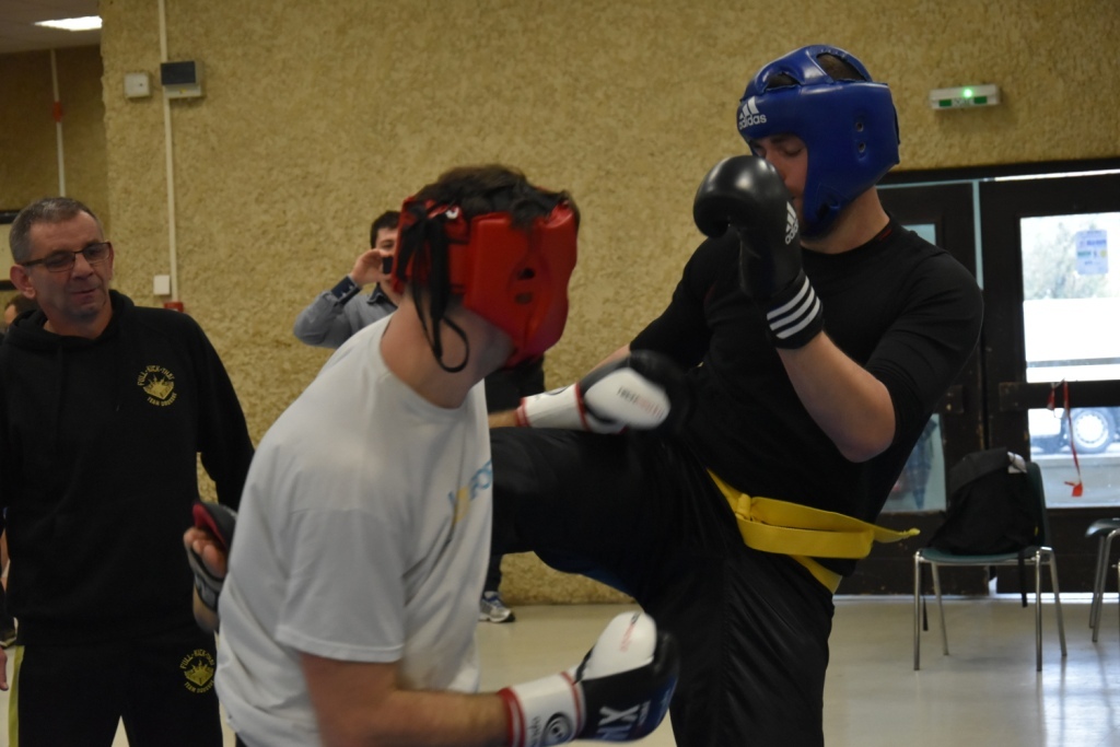 Les pratiquants s'opposaient en boxe pieds-poings Light Contact pendant des assauts de 2 rounds avec des partenaires des autres clubs, du même sexe, âge et poids. Les touches doivent être au dessus de la ceinture, contrôlées.