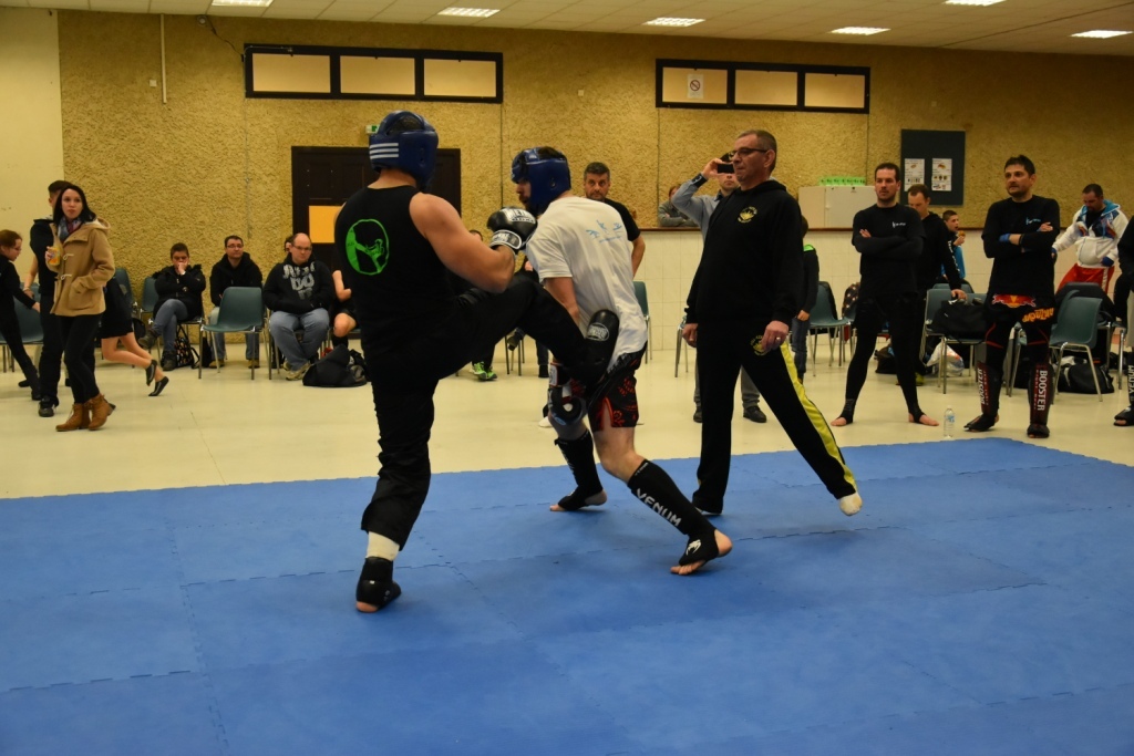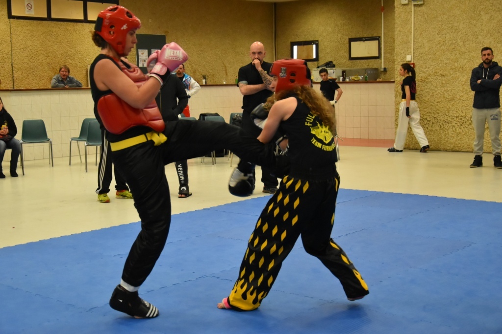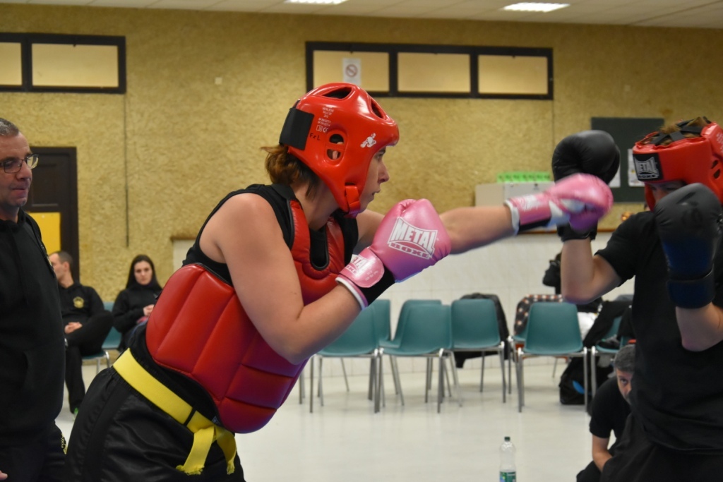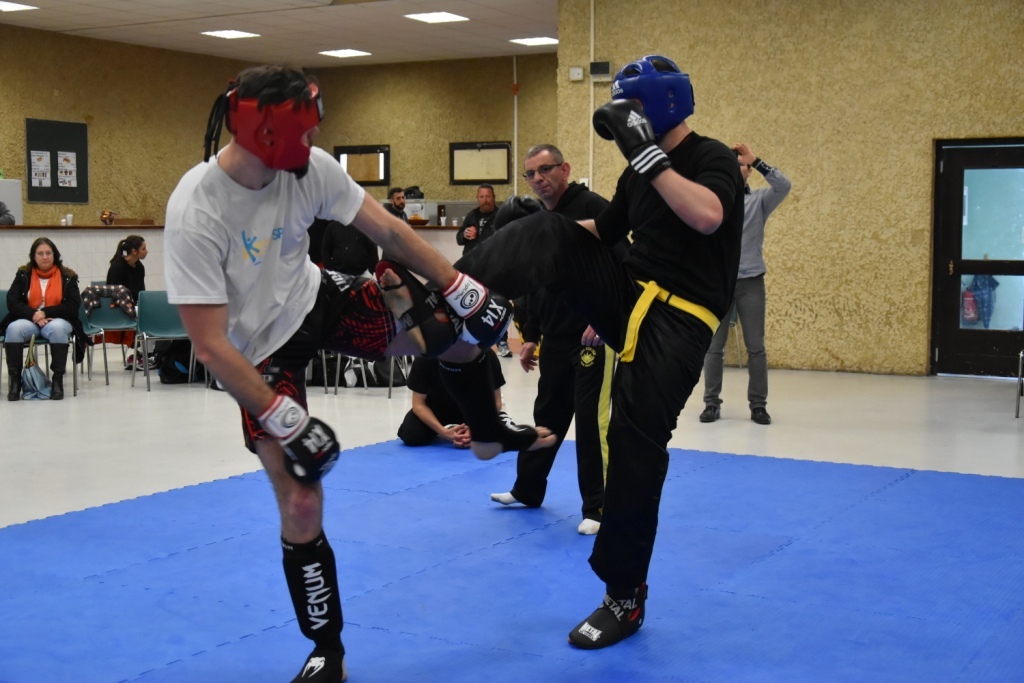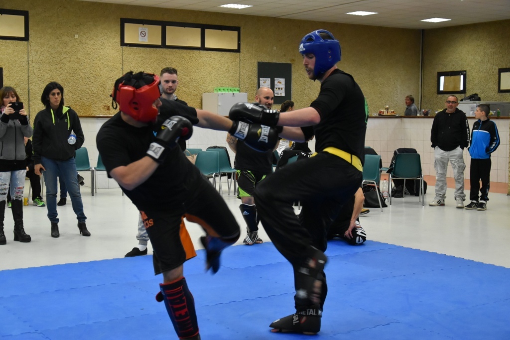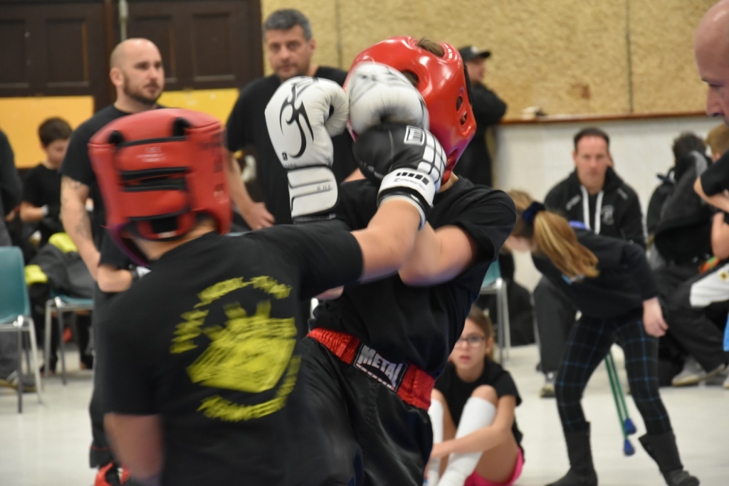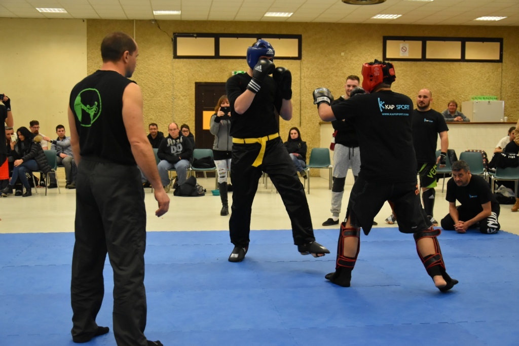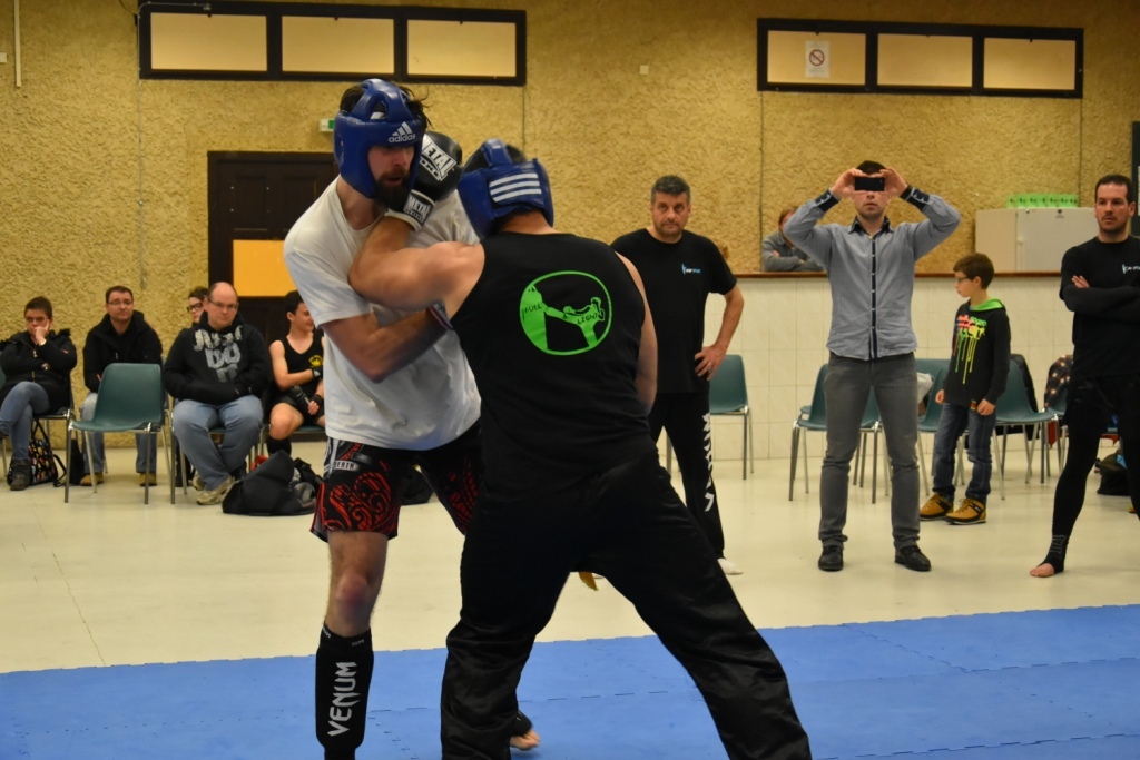 Les pratiquants s'opposaient en boxe pieds-poings Light Contact pendant des assauts de 2 rounds avec des partenaires des autres clubs, du même sexe, âge et poids. Les touches doivent être au dessus de la ceinture, contrôlées.