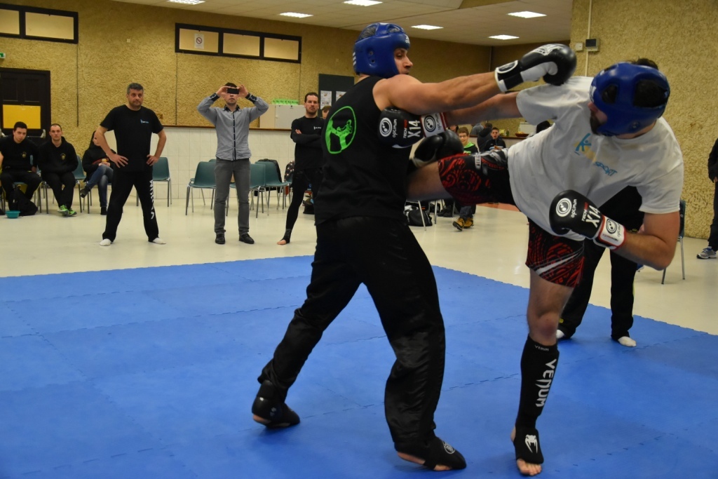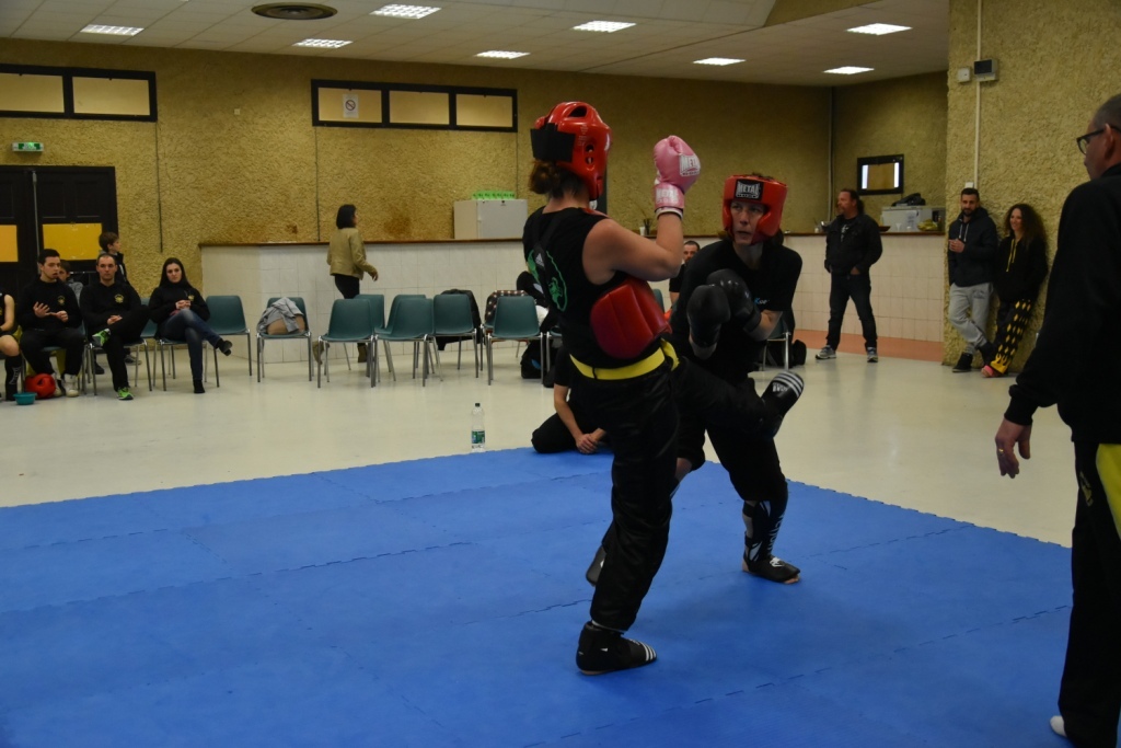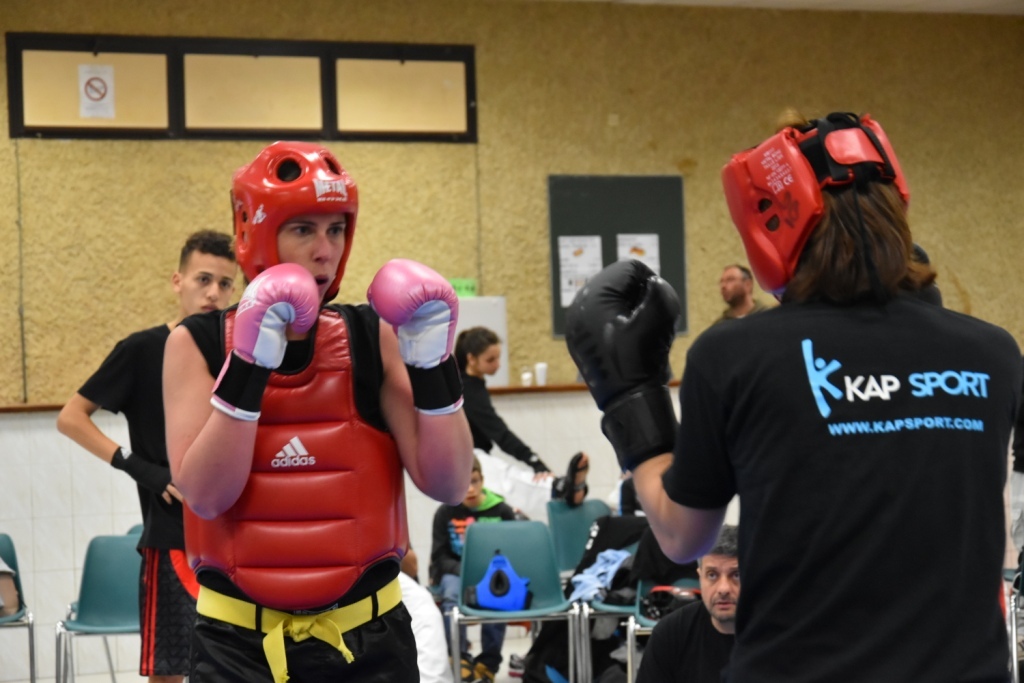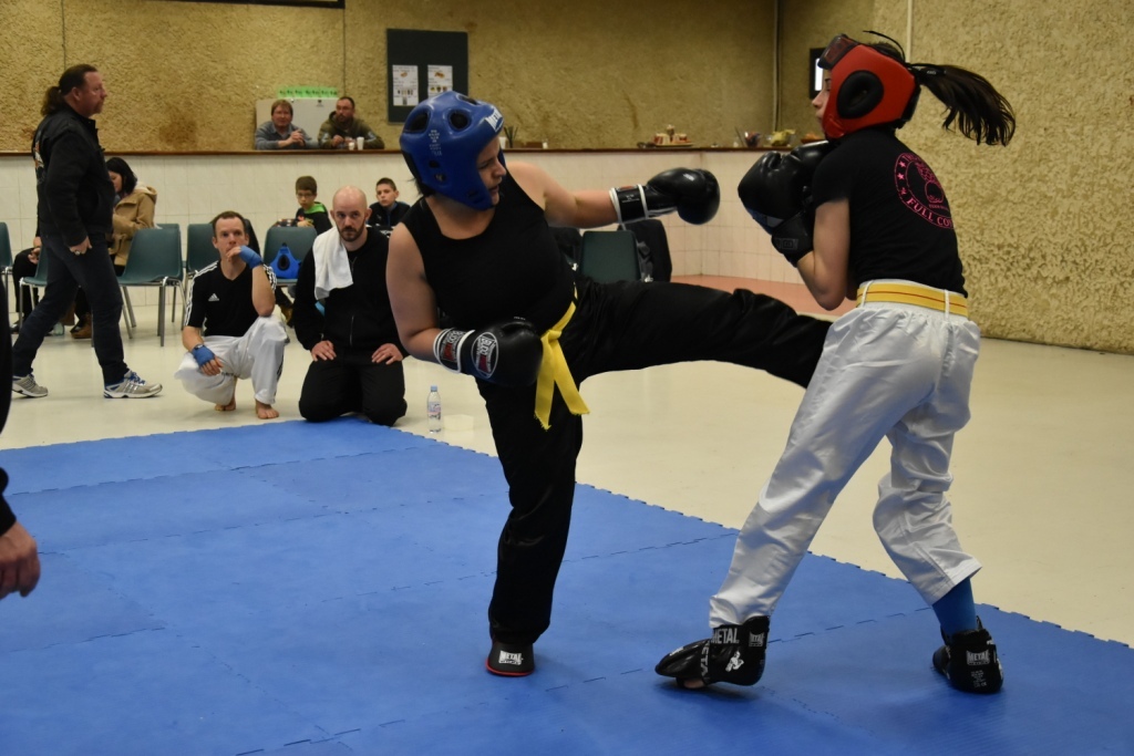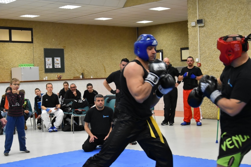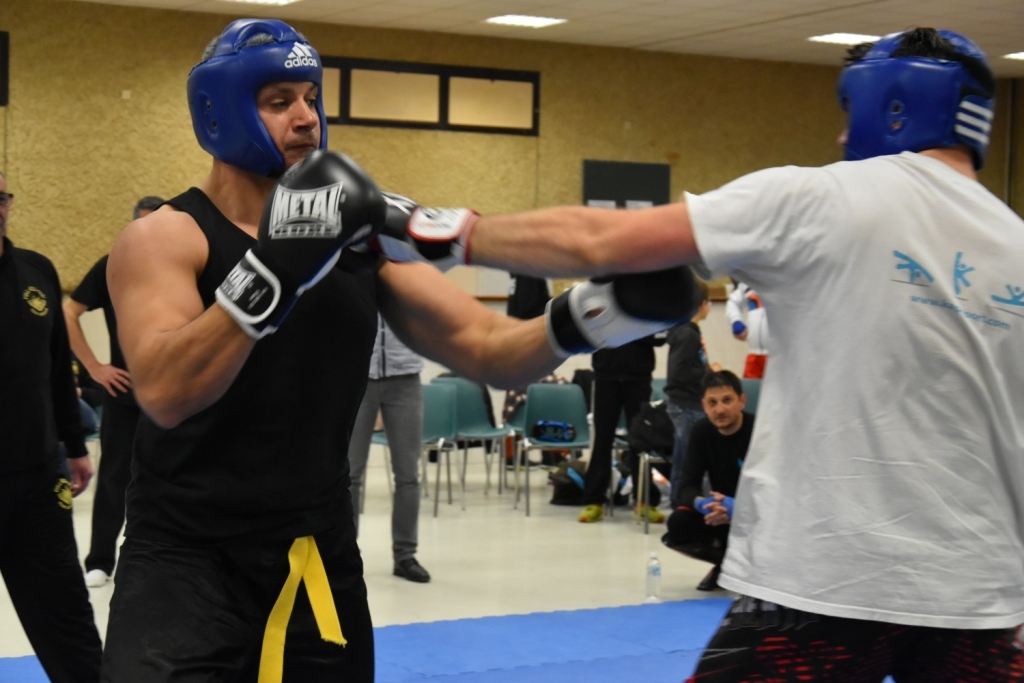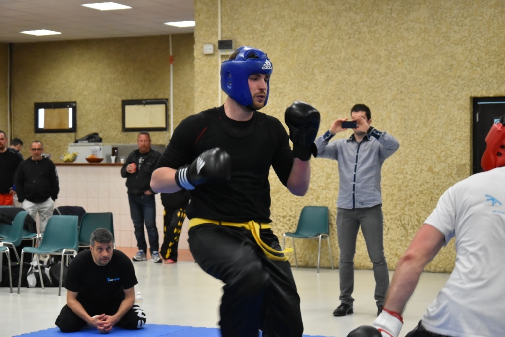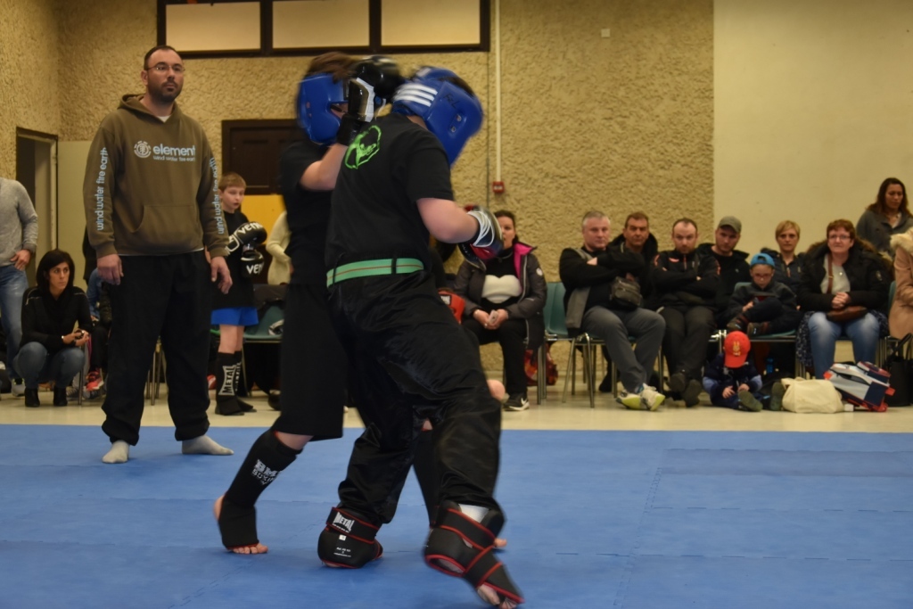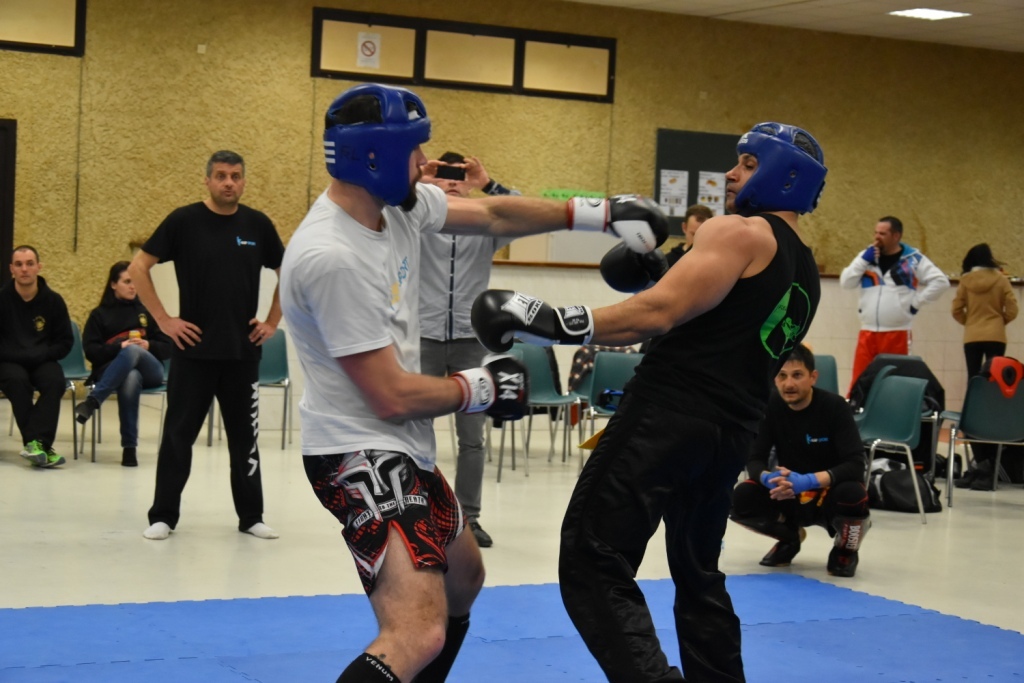 Les pratiquants s'opposaient en boxe pieds-poings Light Contact pendant des assauts de 2 rounds avec des partenaires des autres clubs, du même sexe, âge et poids. Les touches doivent être au dessus de la ceinture, contrôlées.