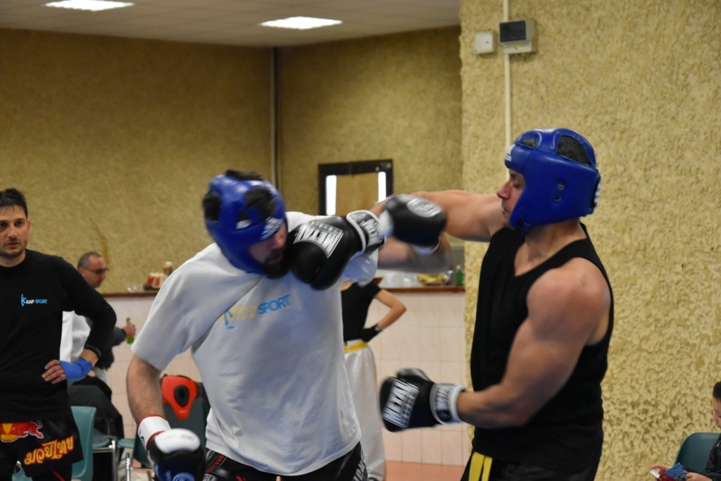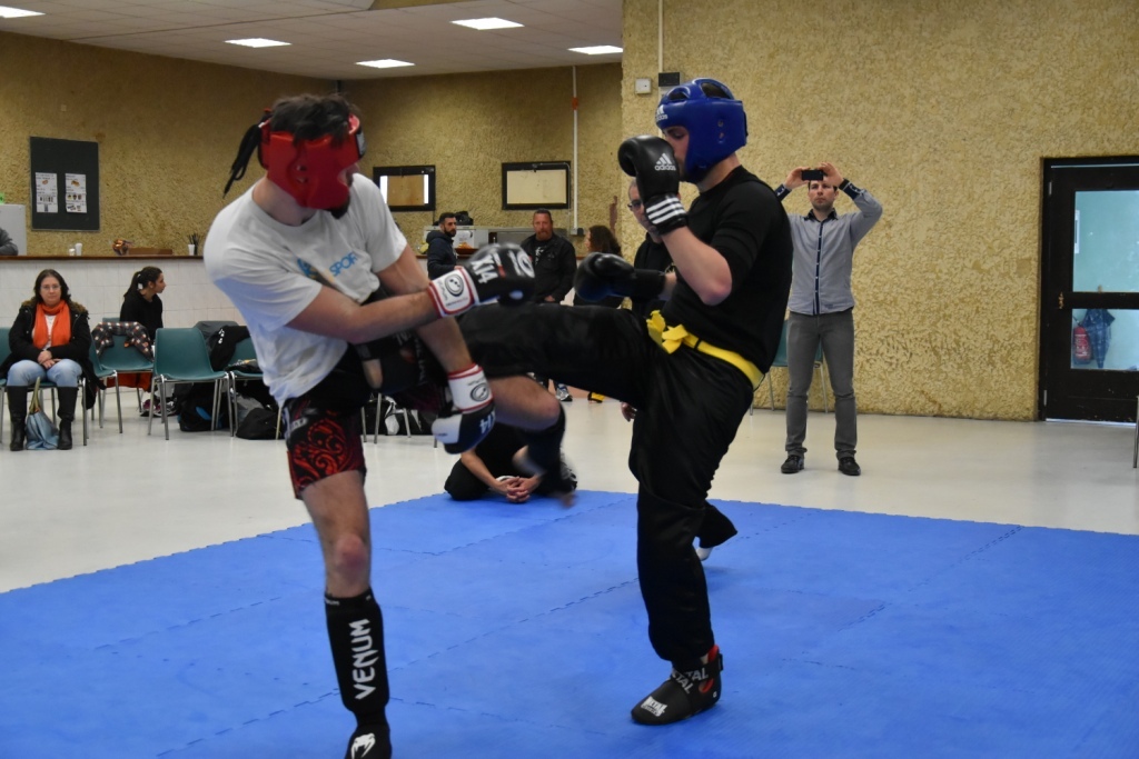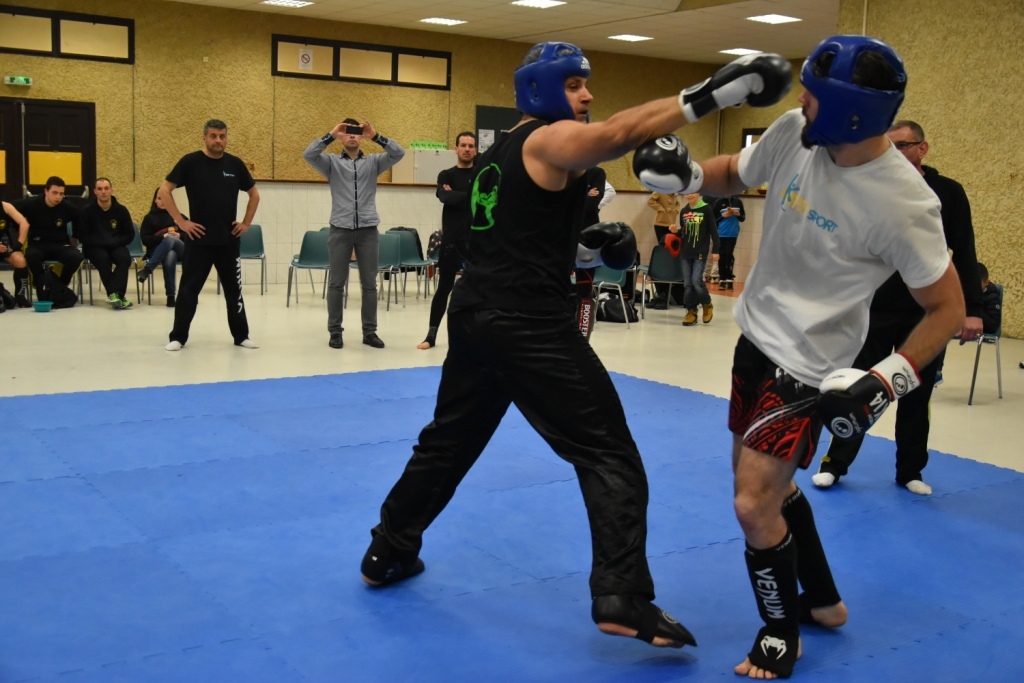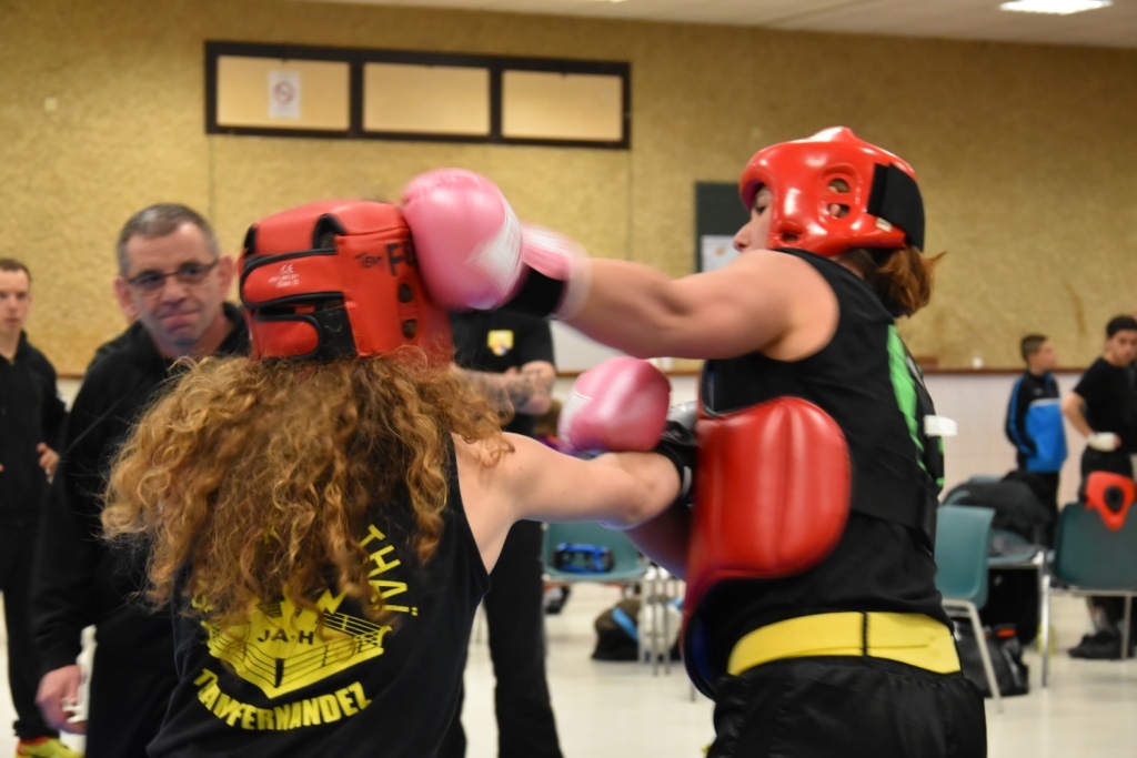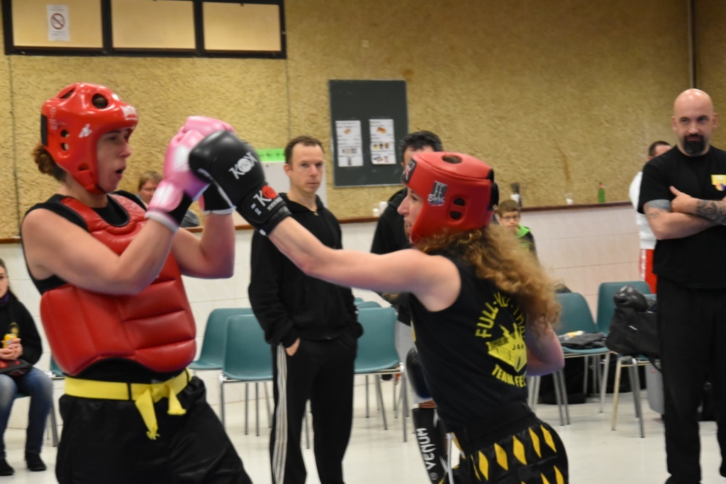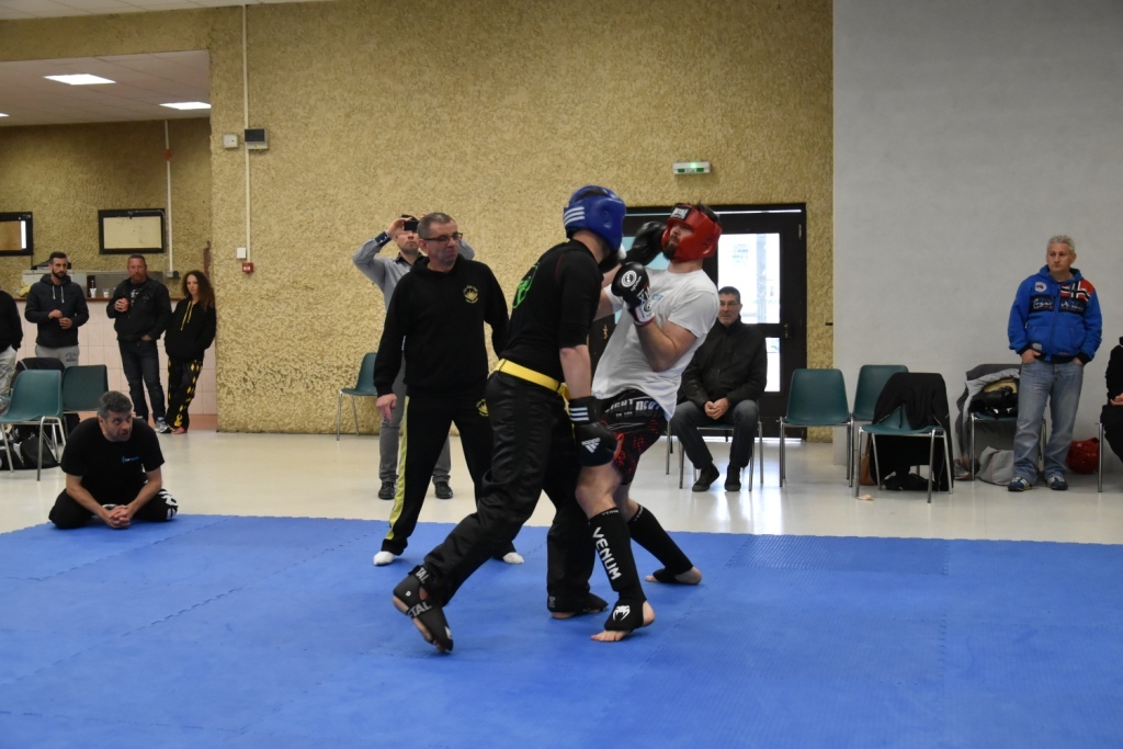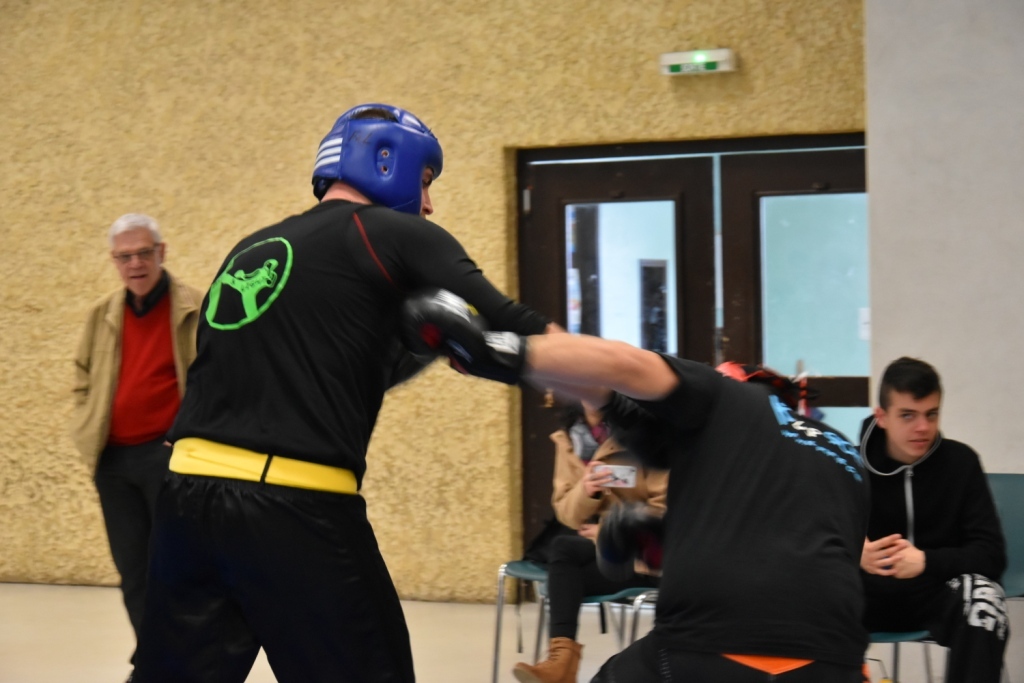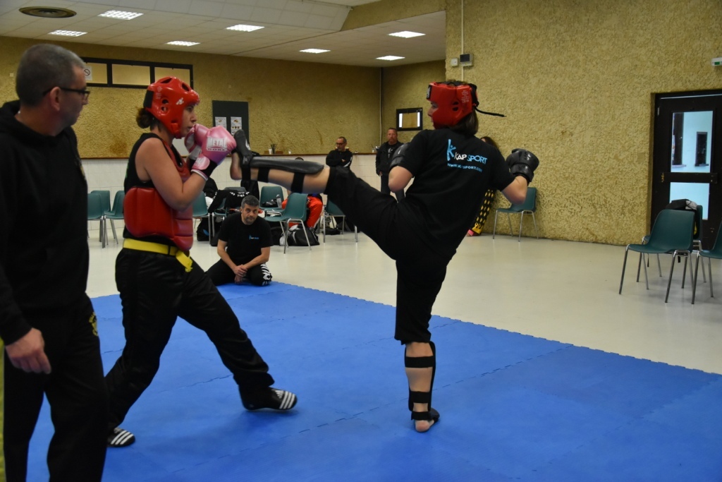 Les pratiquants s'opposaient en boxe pieds-poings Light Contact pendant des assauts de 2 rounds avec des partenaires des autres clubs, du même sexe, âge et poids. Les touches doivent être au dessus de la ceinture, contrôlées.