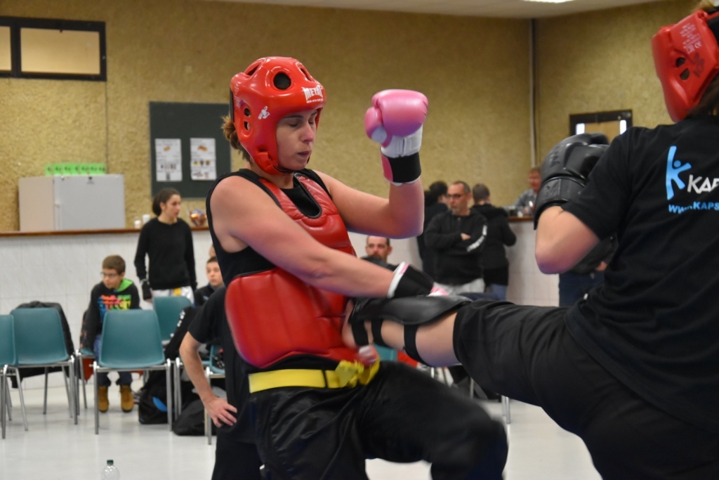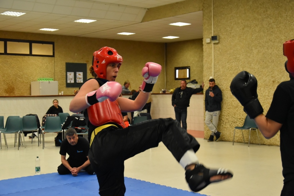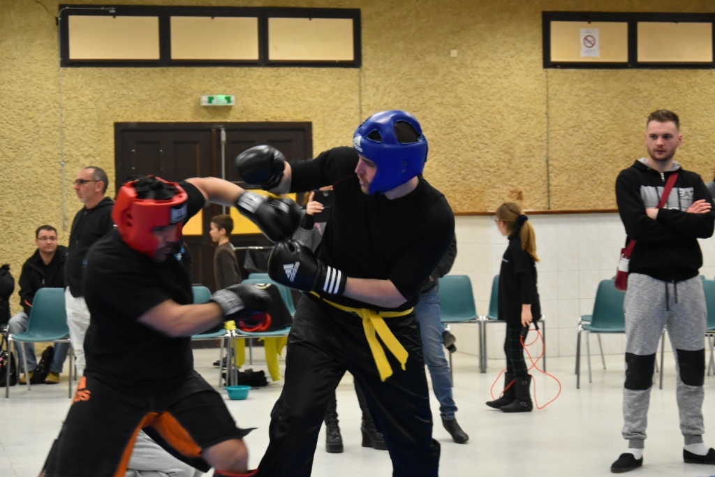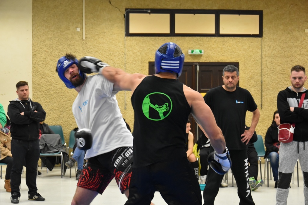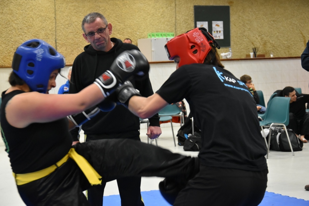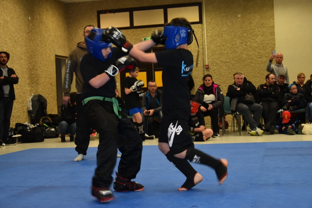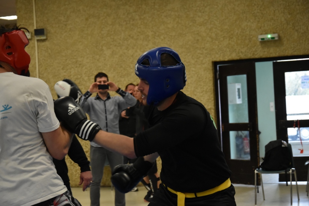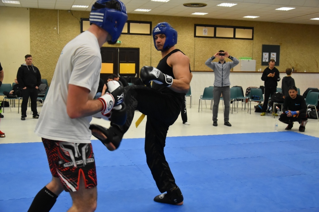 Les pratiquants s'opposaient en boxe pieds-poings Light Contact pendant des assauts de 2 rounds avec des partenaires des autres clubs, du même sexe, âge et poids. Les touches doivent être au dessus de la ceinture, contrôlées.
