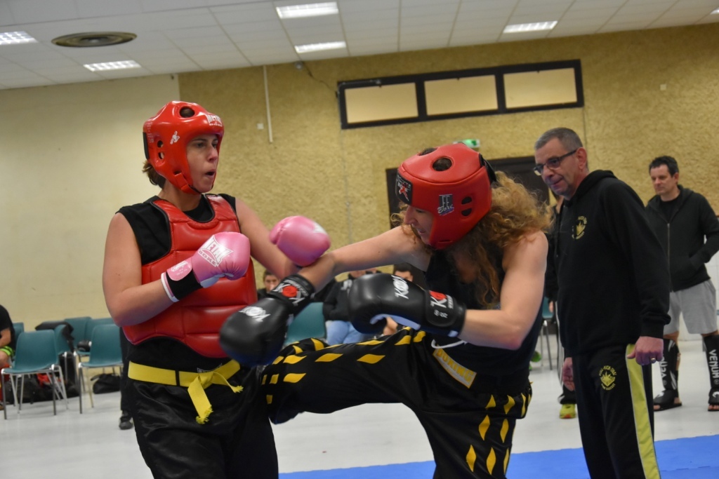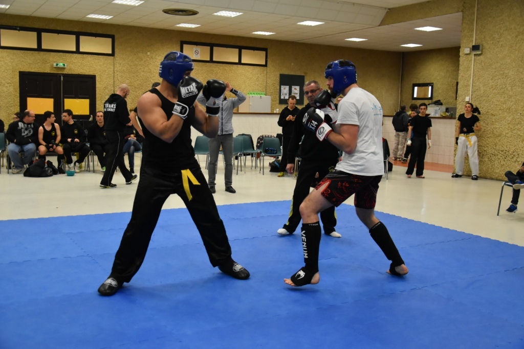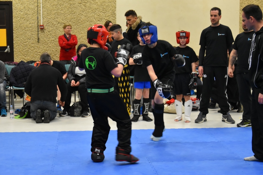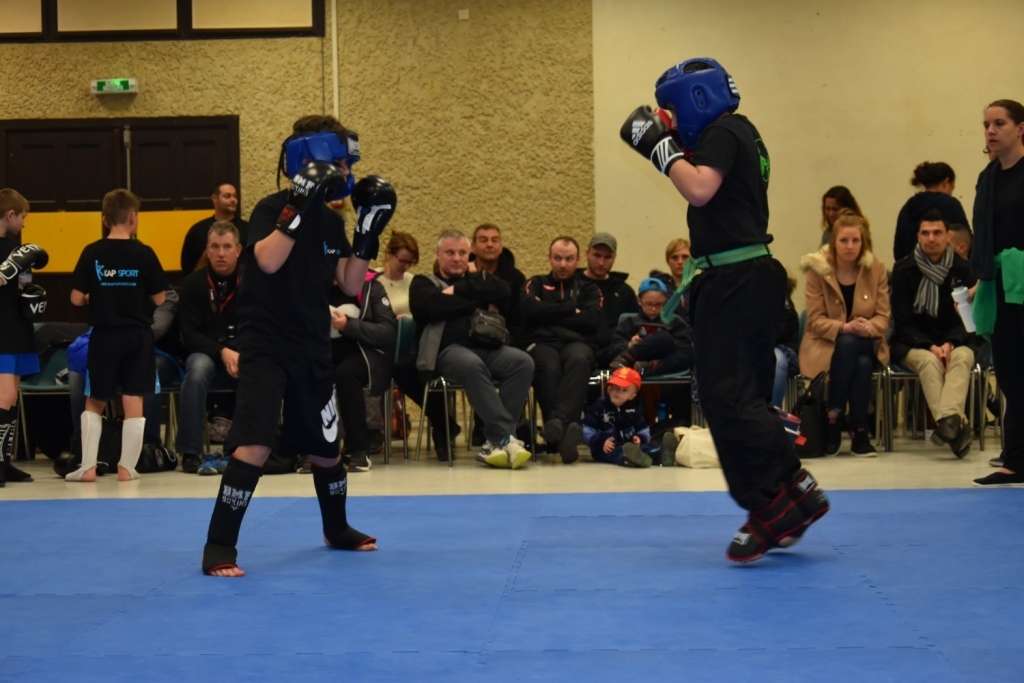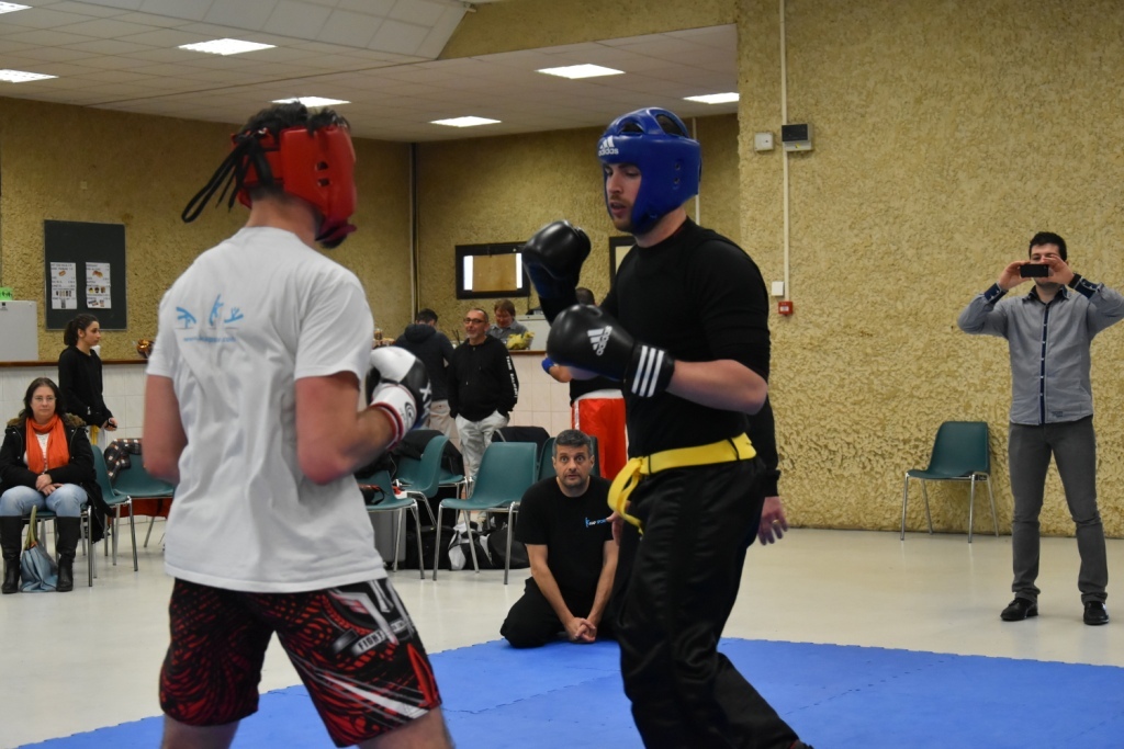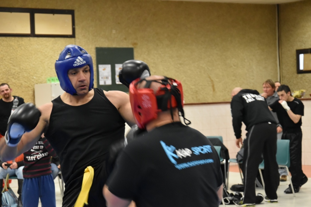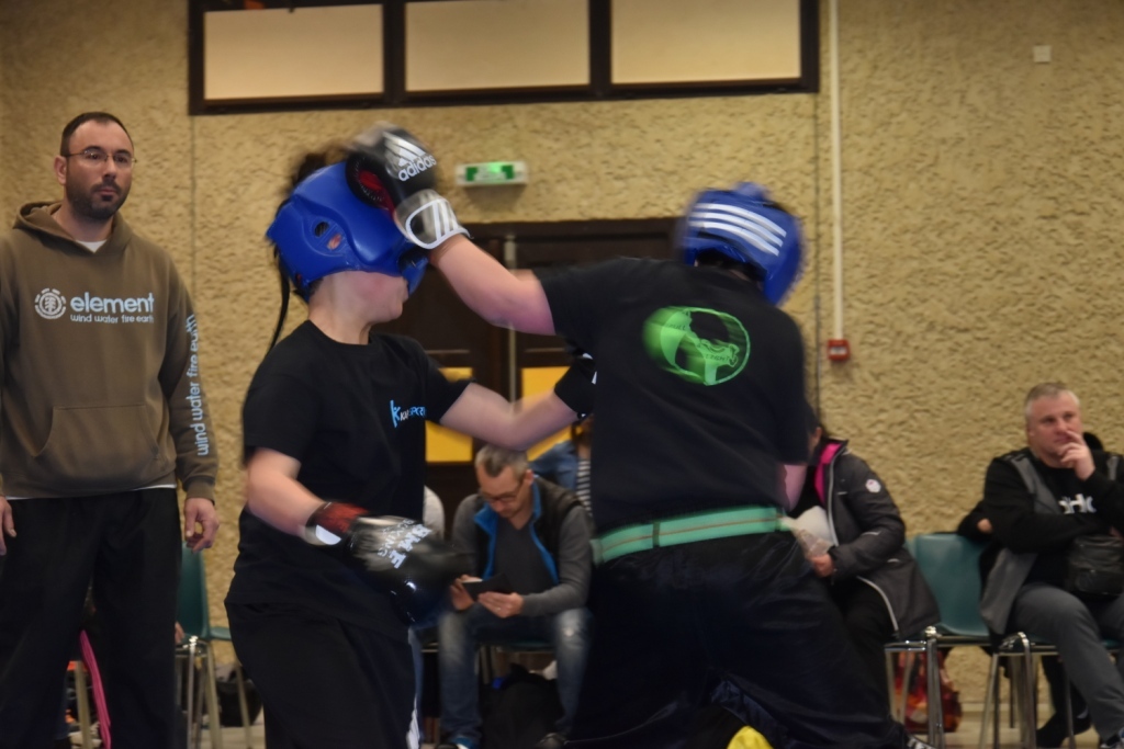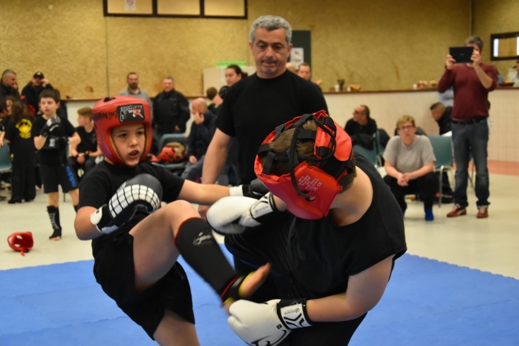 Les pratiquants s'opposaient en boxe pieds-poings Light Contact pendant des assauts de 2 rounds avec des partenaires des autres clubs, du même sexe, âge et poids. Les touches doivent être au dessus de la ceinture, contrôlées.