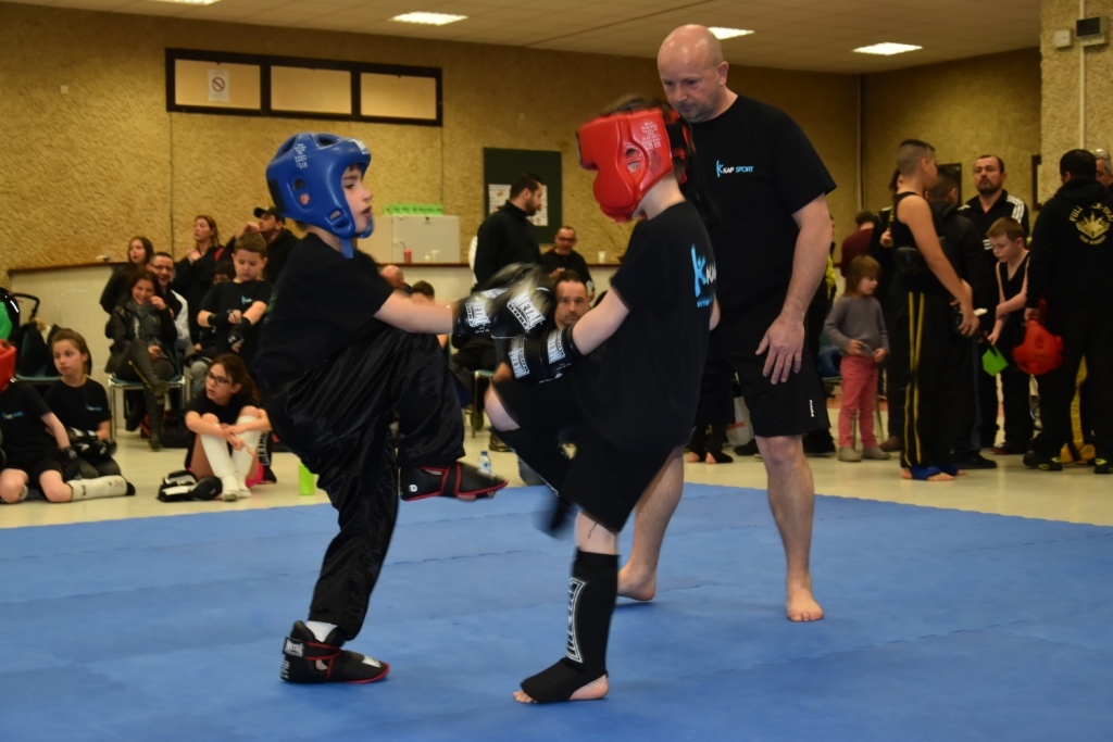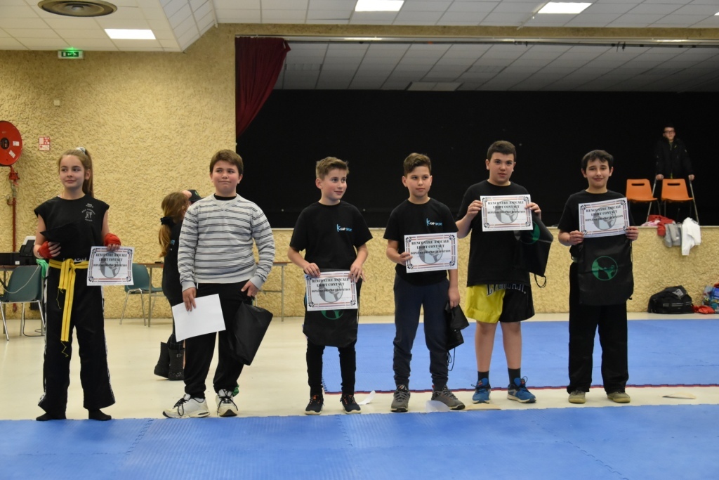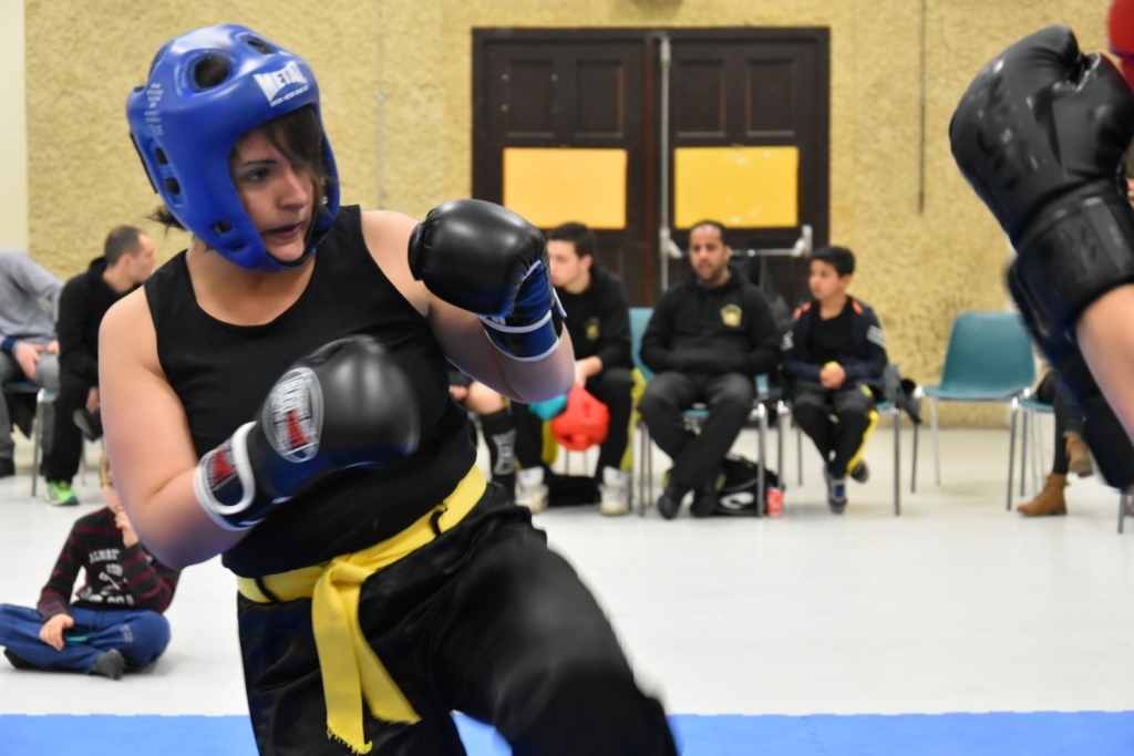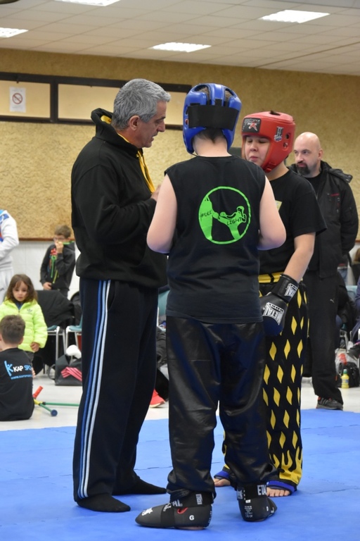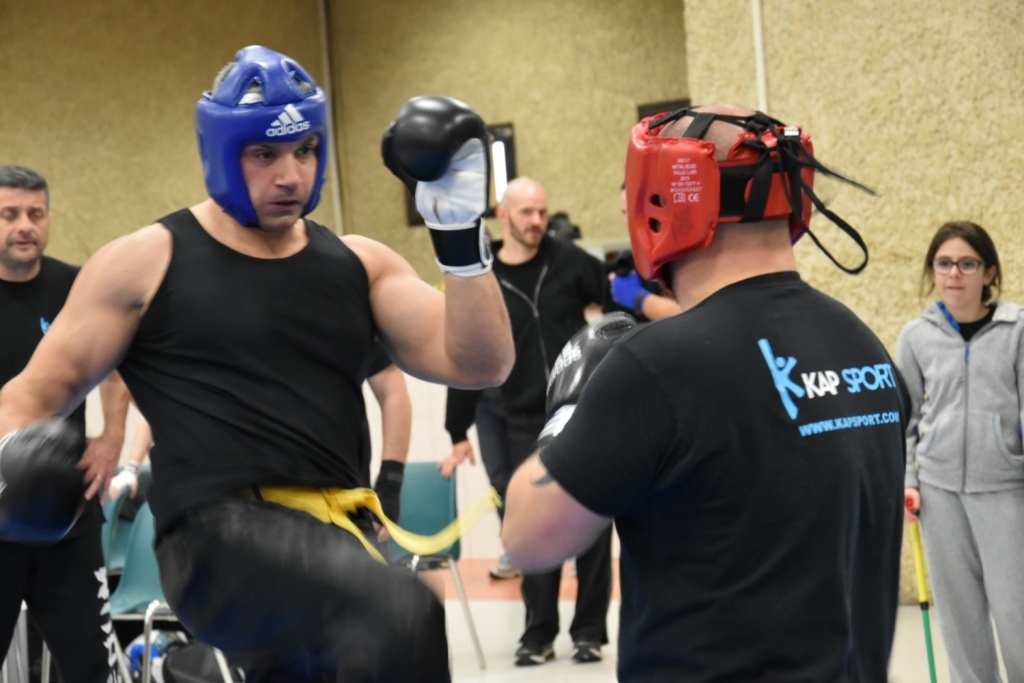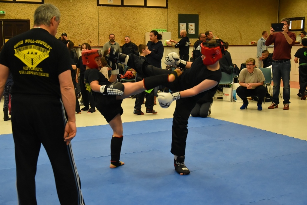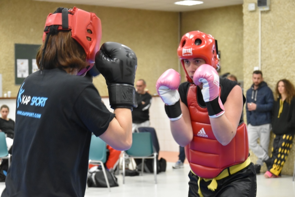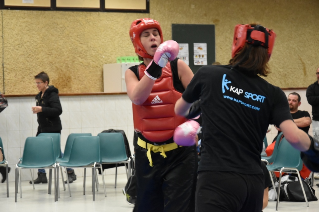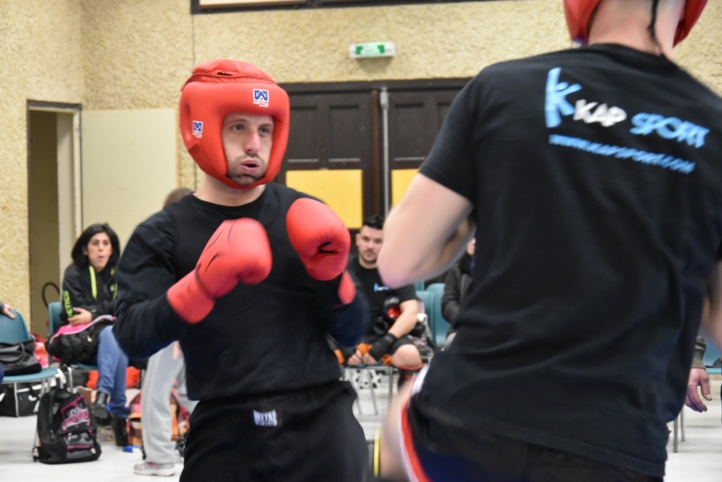 Les pratiquants s'opposaient en boxe pieds-poings Light Contact pendant des assauts de 2 rounds avec des partenaires des autres clubs, du même sexe, âge et poids. Les touches doivent être au dessus de la ceinture, contrôlées.