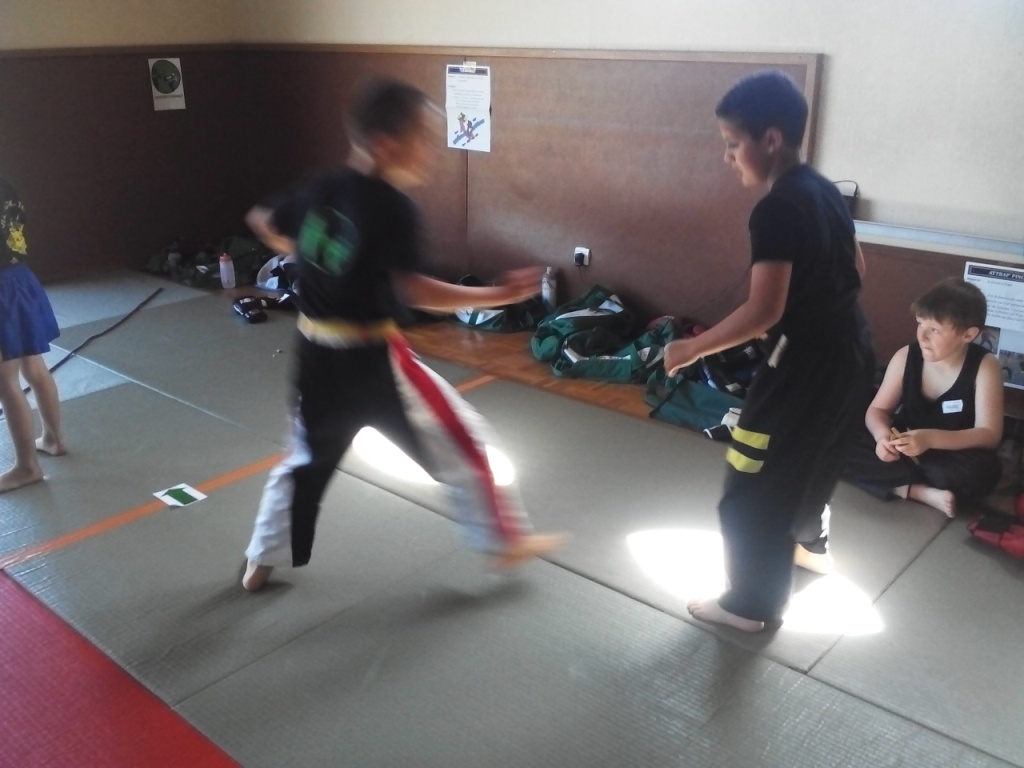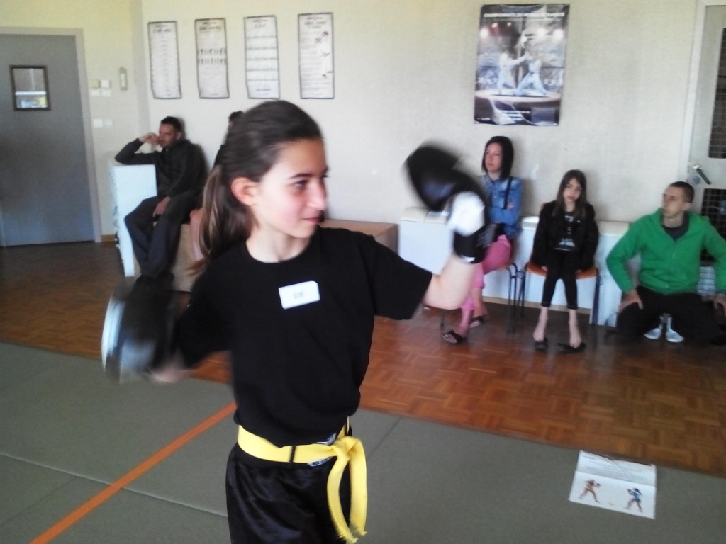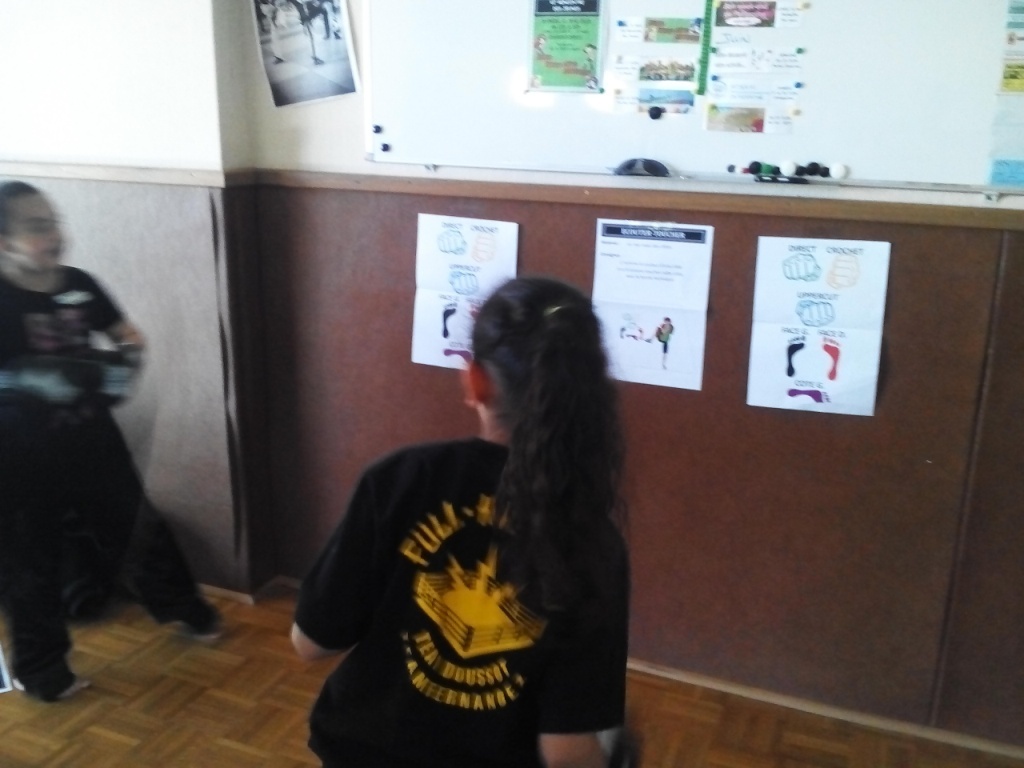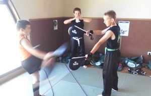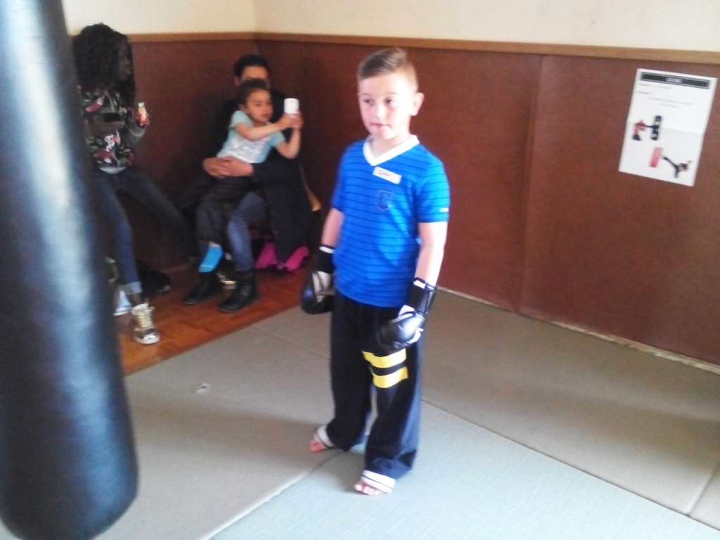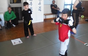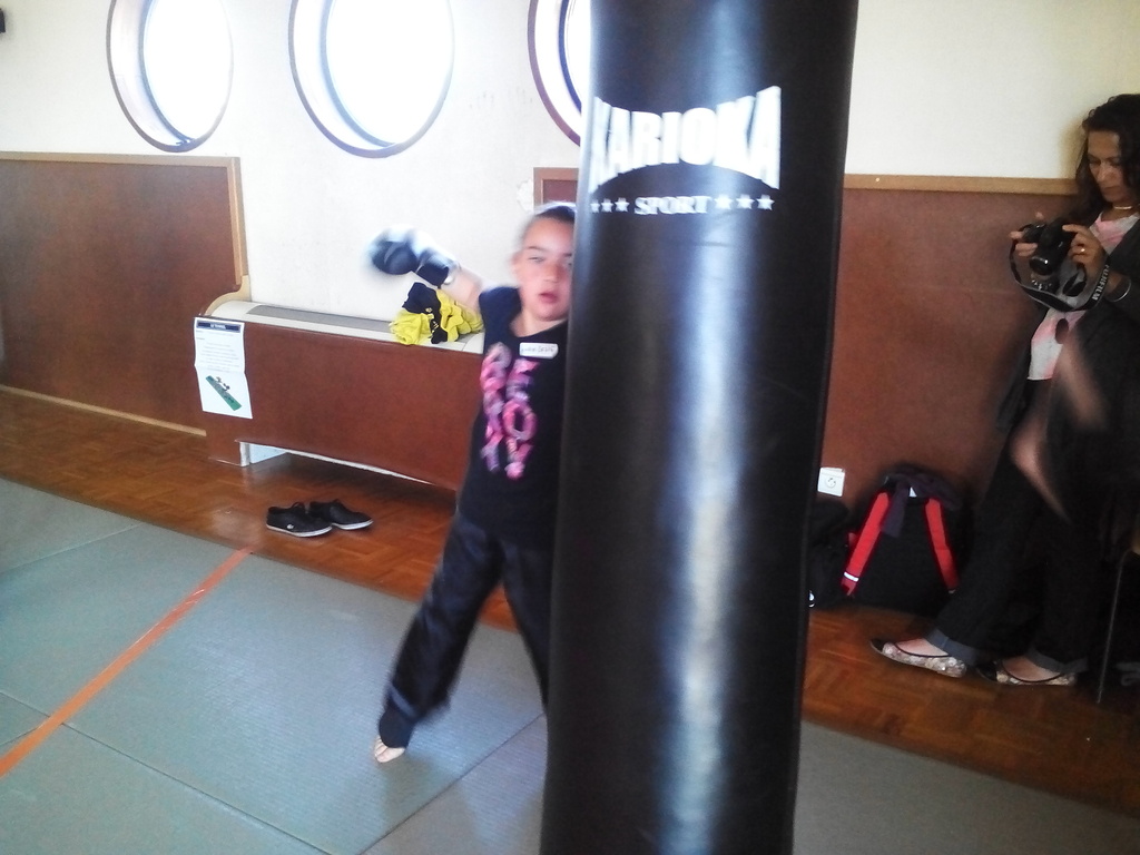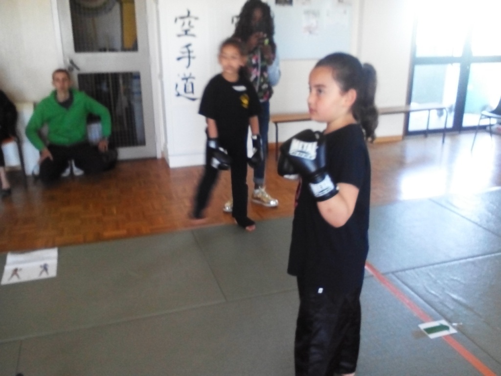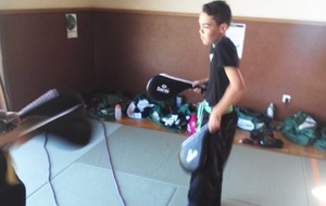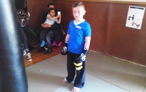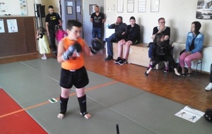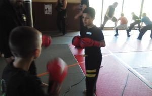 Après des jeux d'opposition par équipe de 3, et quelques assauts, les jeunes recevaient tous en cadeau un diplôme et une pochette à personnaliser avec des autocollants sur le thème de la boxe.