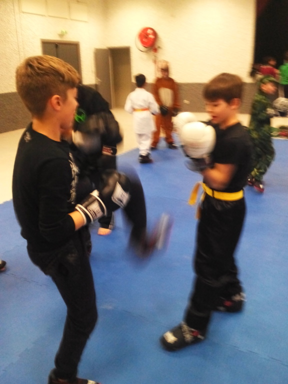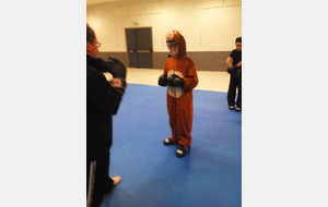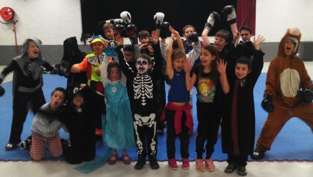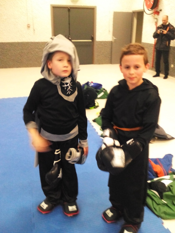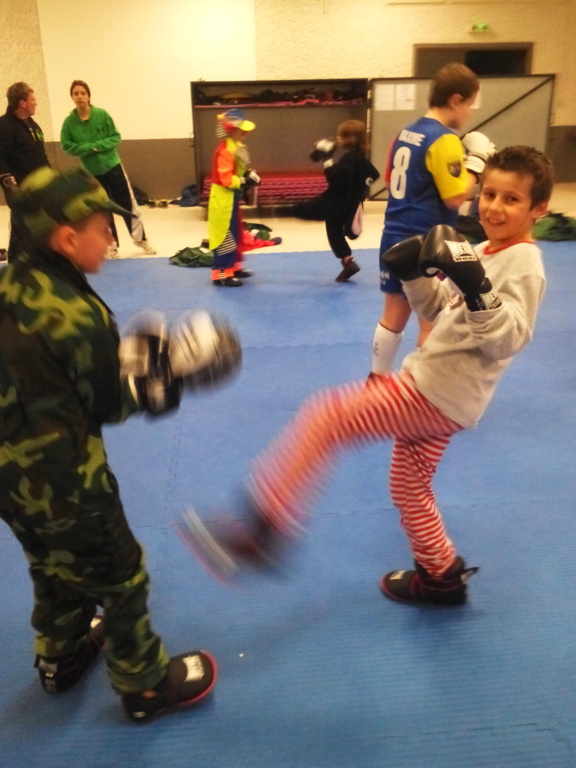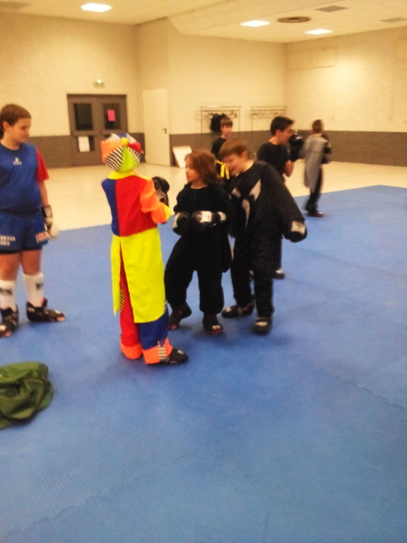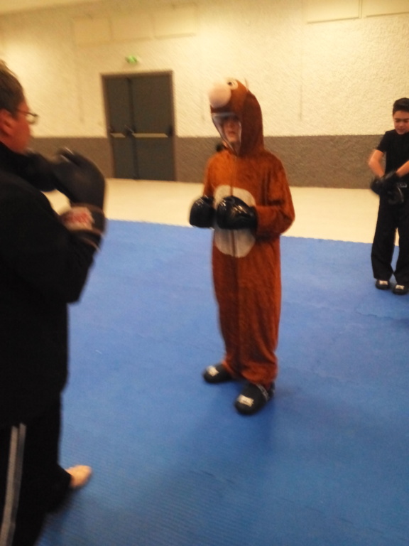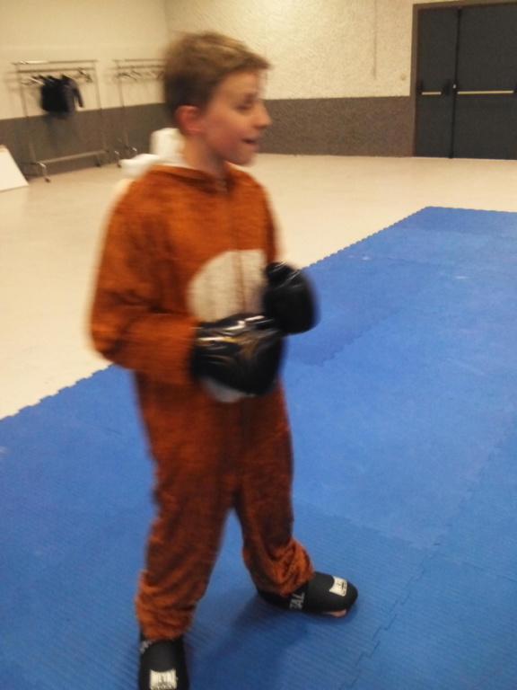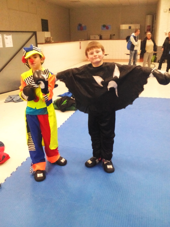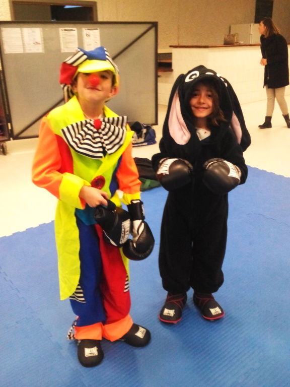 Après la trêve due aux vacances scolaires, et Mardi Gras étant passé, les Enfants-Jeunes de l'association étaient invités à venir s'entrainer déguisés. il y avait un singe, un judoka, un en pyjama, un clown, un fantôme... et à la fin du cours, chacun devait s'exprimer et boxer dans la thématique de son costume... rigolade assuré.