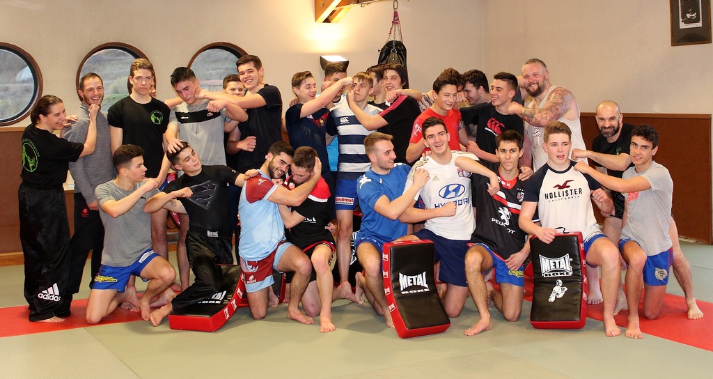 Les jeunes « -19 ans » du Rugby Club du Pays Saint Jeannais se rendaient à Charantonnay ce samedi, à la demande de leurs entraîneurs, pour un cours d'opposition et physique différent. Les crampons sont restés dans les sacs, et le ballon n'a pas permis de transformation... et surtout, ils se trouvèrent enfermés dans une salle de 100 m². Au programme, initiation au kick boxing et travail physique et cardio, tant sur le rythme que sur la résistance. Après une présentation et les consignes de sécurité et le respect de leur coéquipier, les 24 présents, dont un des coach qui a "assuré", le cours pouvait commencer par de la corde à sauter ;-). S’enchaînaient ensuite quelques techniques de poings et de pieds, puis le physique était mise à rude épreuve, par du travail sur 3 min puis des assauts. Grace aux boucliers de mousse, ils pouvaient aussi développer leur puissance. Les étirements et retour au calme finissaient la séance. L'équipe semblait satisfaite de ce cours physique et de cohésion de groupe qui changeait de leurs entrainement habituel.