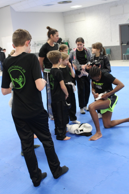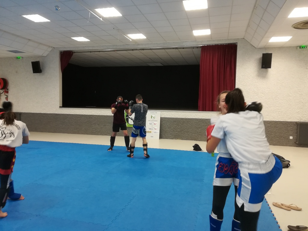 Stage avec Anaelle Angerville, championne internationale en Boxe Thai, K1 Rules et Boxe Anglaise, accompagné de son entraîneur Dominique Poulet de la Team Lions Thaïs .... 63 combats, avec 55 victoires don 10 par K.O. Un immense merci à eux, pour leur gentillesse, disponibilité et professionnalisme, ainsi que pour les dédicaces.... Merci aussi aux adhérents pour l'installation et le rangement de la salle... une journée riche, le matin pour nos adhérents de 7 à près de 60 ans, et l'après midi pour d'autres pratiquants pieds-poings venus de différents clubs...