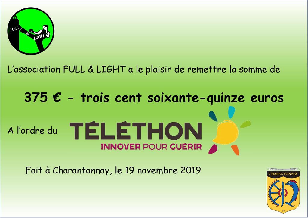 L'association est heureuse de remettre un chèque de 375 € au Charantéléthon.