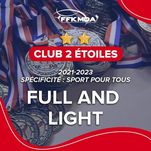 L'association Full & Light est de nouveau labellisée "Club 2 étoiles - Sport pour tous" par la Fédération Française de Kick Boxing Muay Thai et D.A. pour les années 2021-2022...