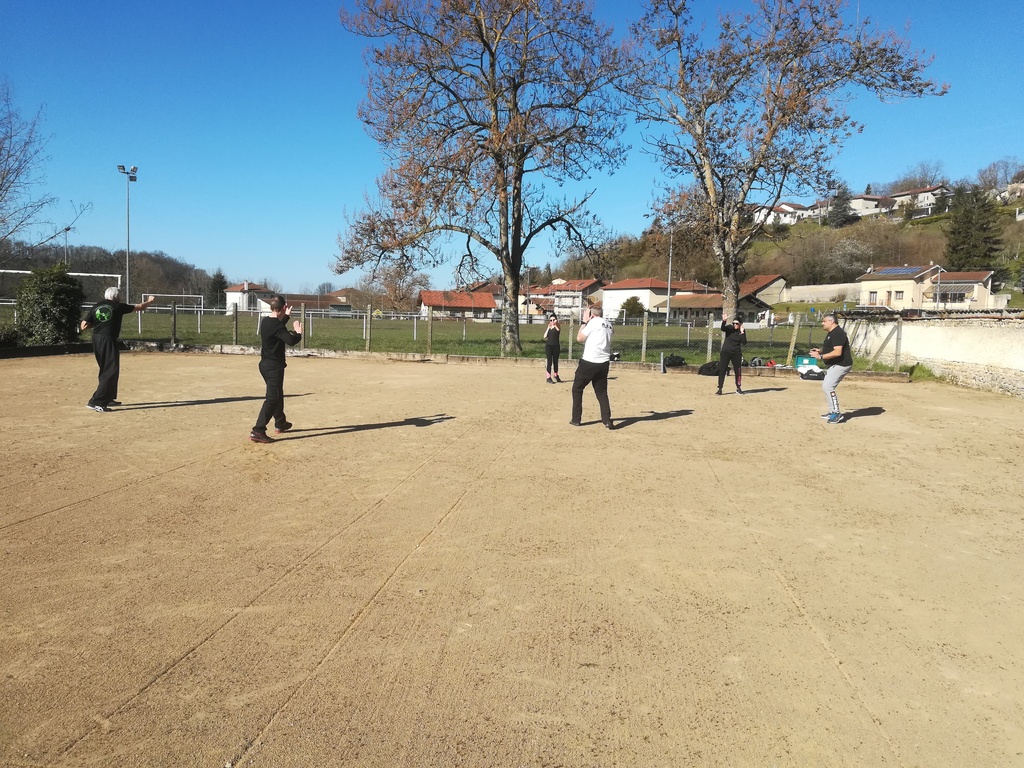 A Meyrieu les Etangs, quelques adhérents de la section Contact Défense (ouverte en septembre) se retrouvaient en plein air, pour réviser, sans contact quelques techniques de base, faire un peu de prépa physique, et appréhender la maitrise du couteau