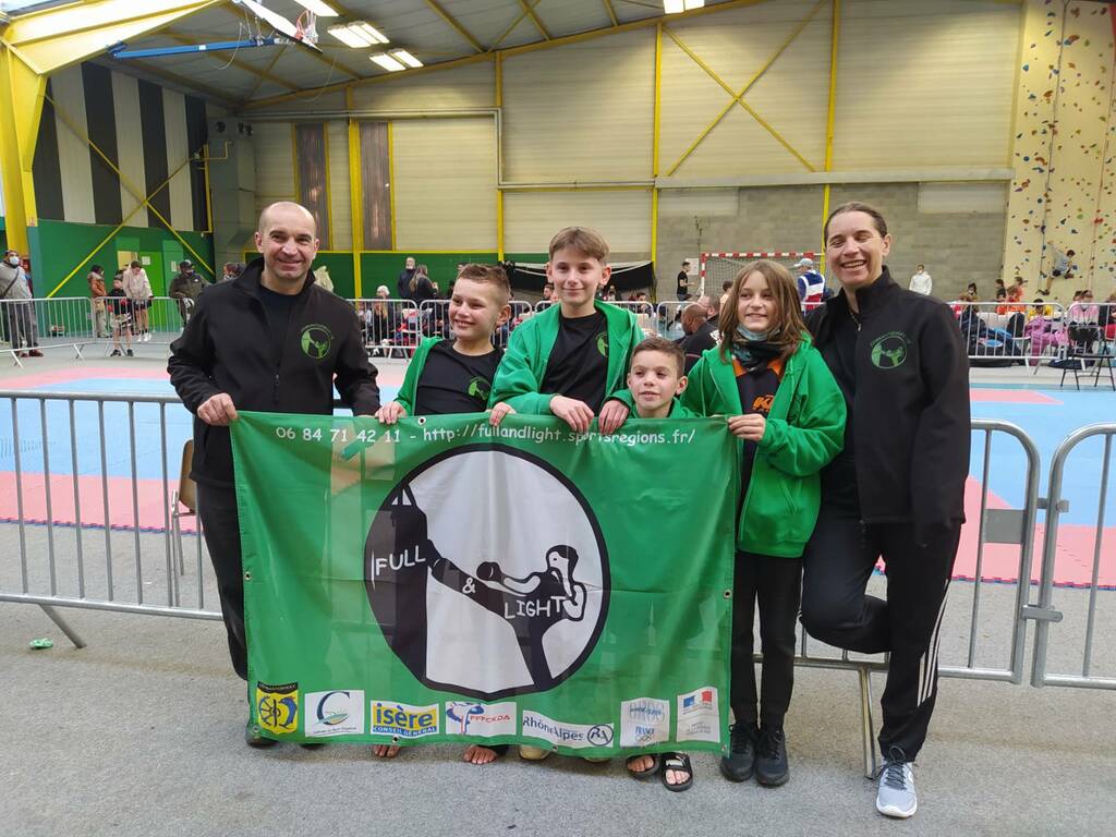 Les coachs accompagnaient ce jours 3 adhérents, pour une première expérience en compétition en assauts Kick Light, ce dimanche 5 décembre à la Coupe de Noël organisée par la ligue régionale à Rive-de-Gier (réservée au -13 ans, tous niveaux confondus).