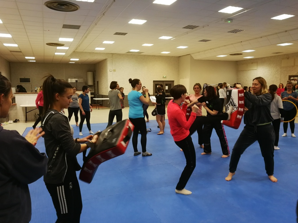Plus de 60 jeunes filles et femmes se sont essayées au Kick Boxing et à la self défense ce mardi soir