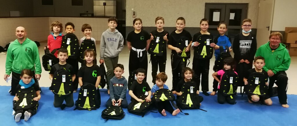 Ce début de semaine, après une trêve bien méritée, les adhérents retrouvaient les tatamis … avec la distribution comme chaque année des cadeaux de Noël offerts par l’association. Le Comité Directeur, fin octobre, choisi et commande un nouvel accessoire, personnalisé aux couleurs du club, satisfaisant petits comme grands, pratiquant en kick boxing, self défense ou préparation physique. Après les Ados et Adultes ce lundi, ce soir les Kids et Jeunes présents découvraient leur joli sac à dos avec le logo du club, bien utile pour le transport du matériel ou pour d’autres activités. La distribution se poursuivra chaque cours jusqu’au 21 janvier.