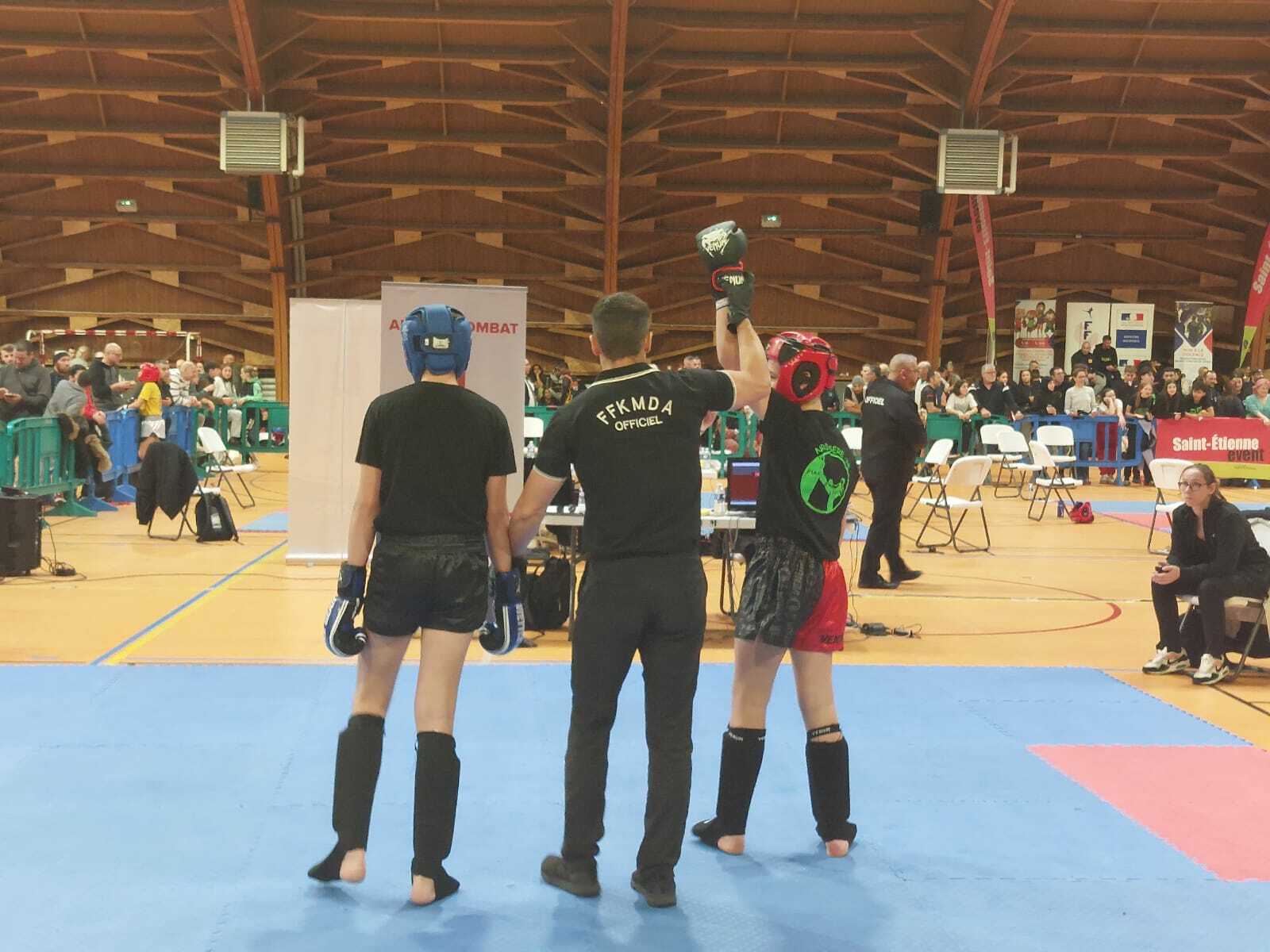 Les 4 combattants qualifiés il y a 2 semaines, et donc engagés, découvraient pour la première fois le niveau national en Kick Light, regroupant un millier d’adhérents de métropole et des Dom-Tom.