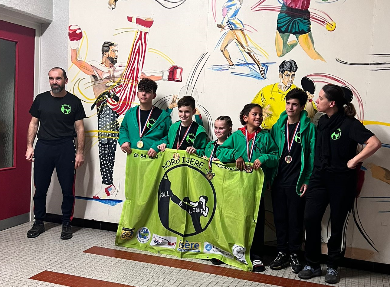 Ce dimanche, la compétition en Light contact (touches uniquement au-dessus de la ceinture) permettait aux 6 combattants, dont une première expérience pour 3 d’entre eux de s’exprimer : Trévys Buisson, poussin, pour sa première compétition, devient champion régional, Siham Duranton benjamin aussi novice prend la 2e place, Ylan Lebon benjamin s’incline en demi-finale sans rien lâcher, Eliott Zanca, minime pour sa première expérience prend la 2e place, Enzo Para, Cadet s’incline en ½ finale, et Anais Chaffraix, Cadette n’a pas pu s’exprimer, son adversaire n’étant pas présente.