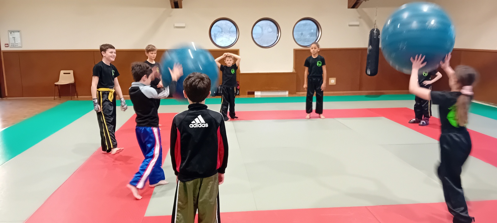 Parfois l’échauffement, pour le groupe des 7-10 ans est différent… et il semble qu’ils adorent les circuits avec divers ateliers mêlant des jeux d'équilibre, de coordination, de renforcement musculaire, de vitesse, de précision…